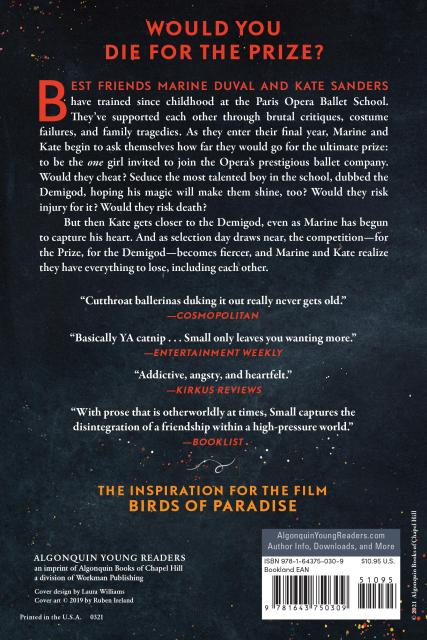 Best friends Marine Duval and Kate Sanders have trained since childhood at the Paris Opera Ballet School, where they’ve forged an inseparable bond through shared stories of family tragedies and a powerful love for dance. When the body of a student is found in the dorms just before the start of their final year, Marine and Kate begin to ask themselves how far they would go for the ultimate prize: to be named the one girl who will join the Opera’s prestigious corps de ballet. Would they cheat? Seduce the most talented boy in the school, dubbed the Demigod, hoping his magic will make them shine, too? Would they risk death for it? Neither girl is sure.