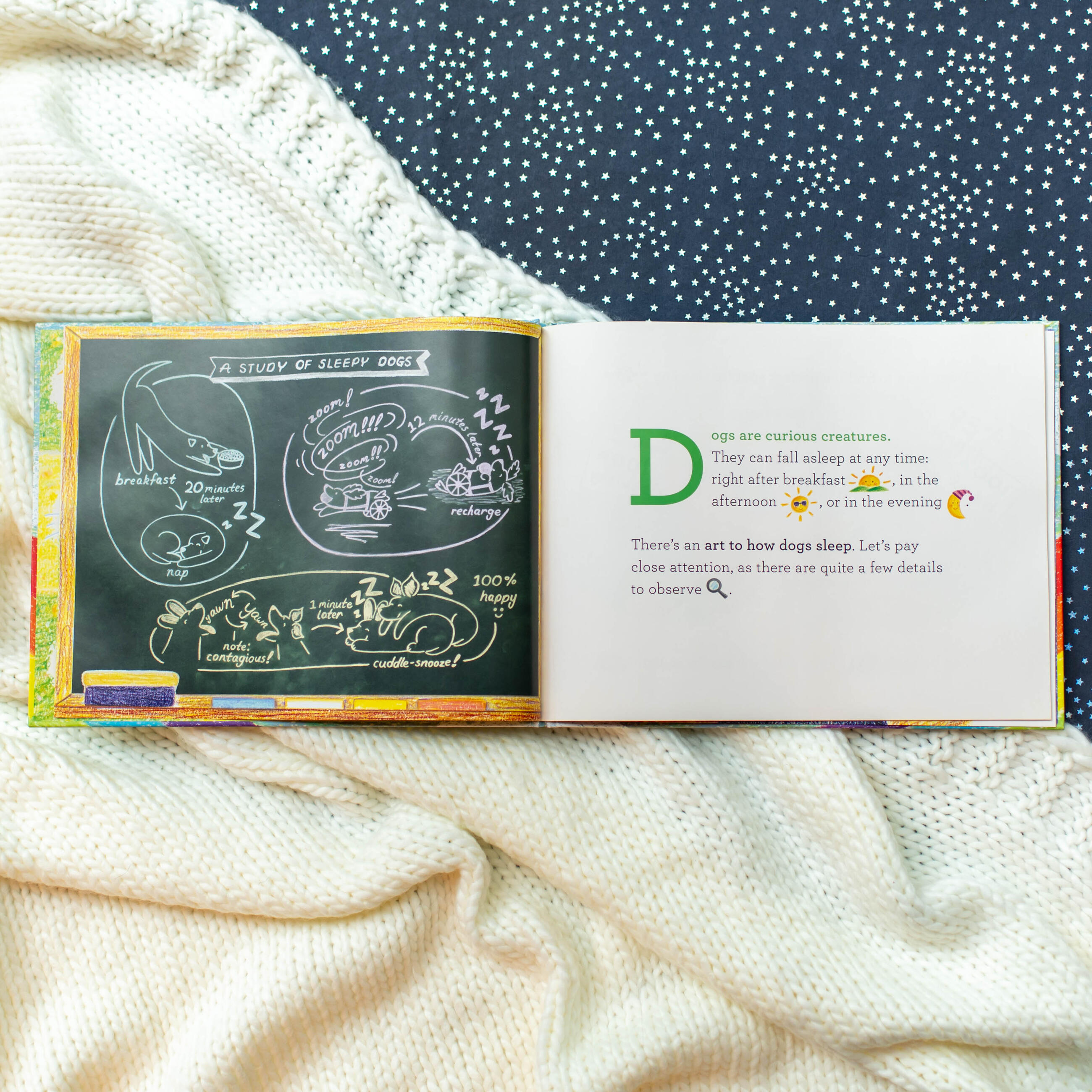 Subtly inviting the reader to slow down and be mindful, this charming picture book with its wide cast of adorable dogs explores their secret and slumbery world and invites you, too, to curl up, close your eyes, and drift off to sleep.