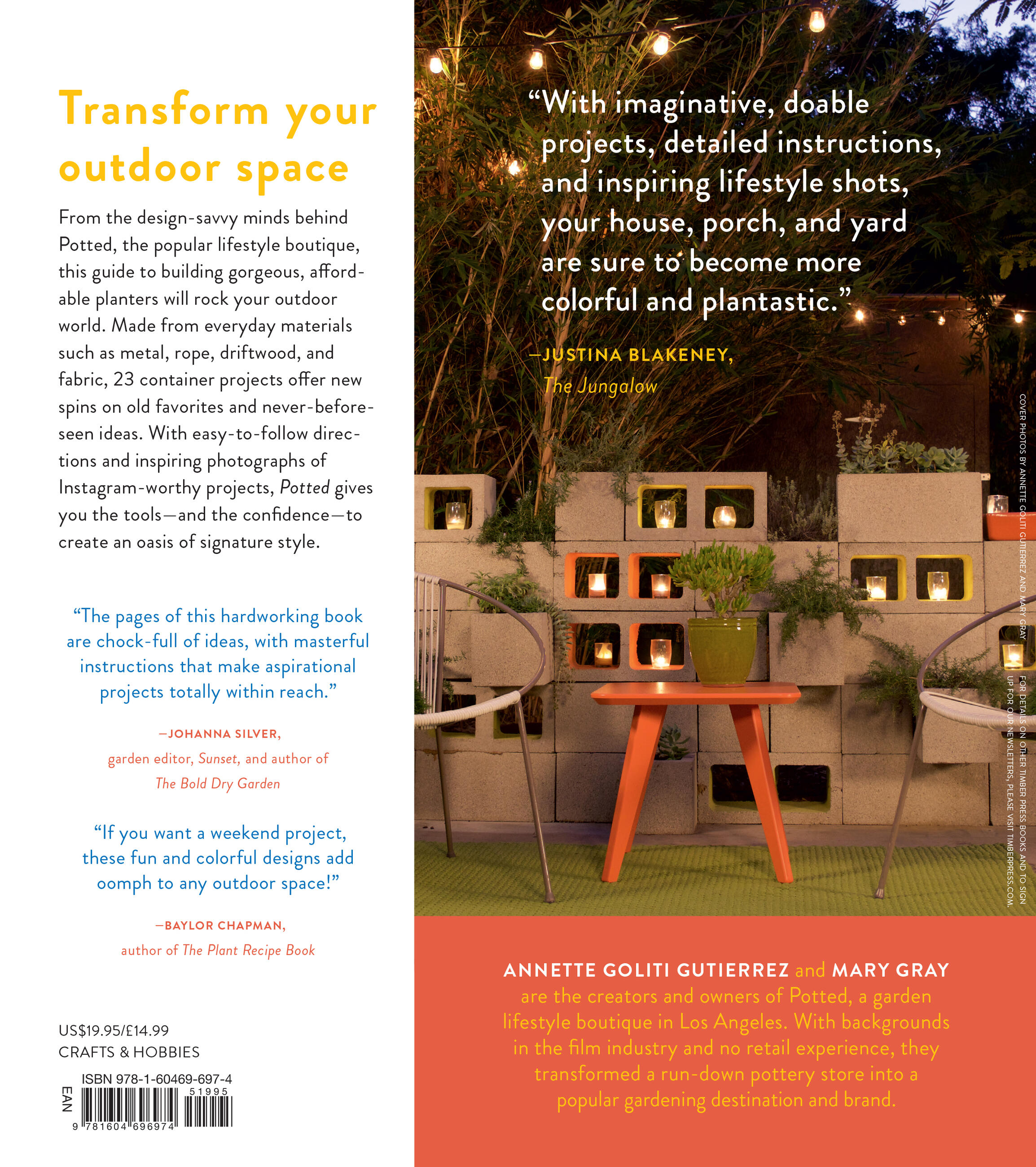 “With imaginative 'doable' projects, detailed instructions and inspiring lifestyle shots, your house, porch, yard is sure to become more colorful and plantastic with Annette and Mary's creative guidance.” —Justina Blakeney, thejungalow.com