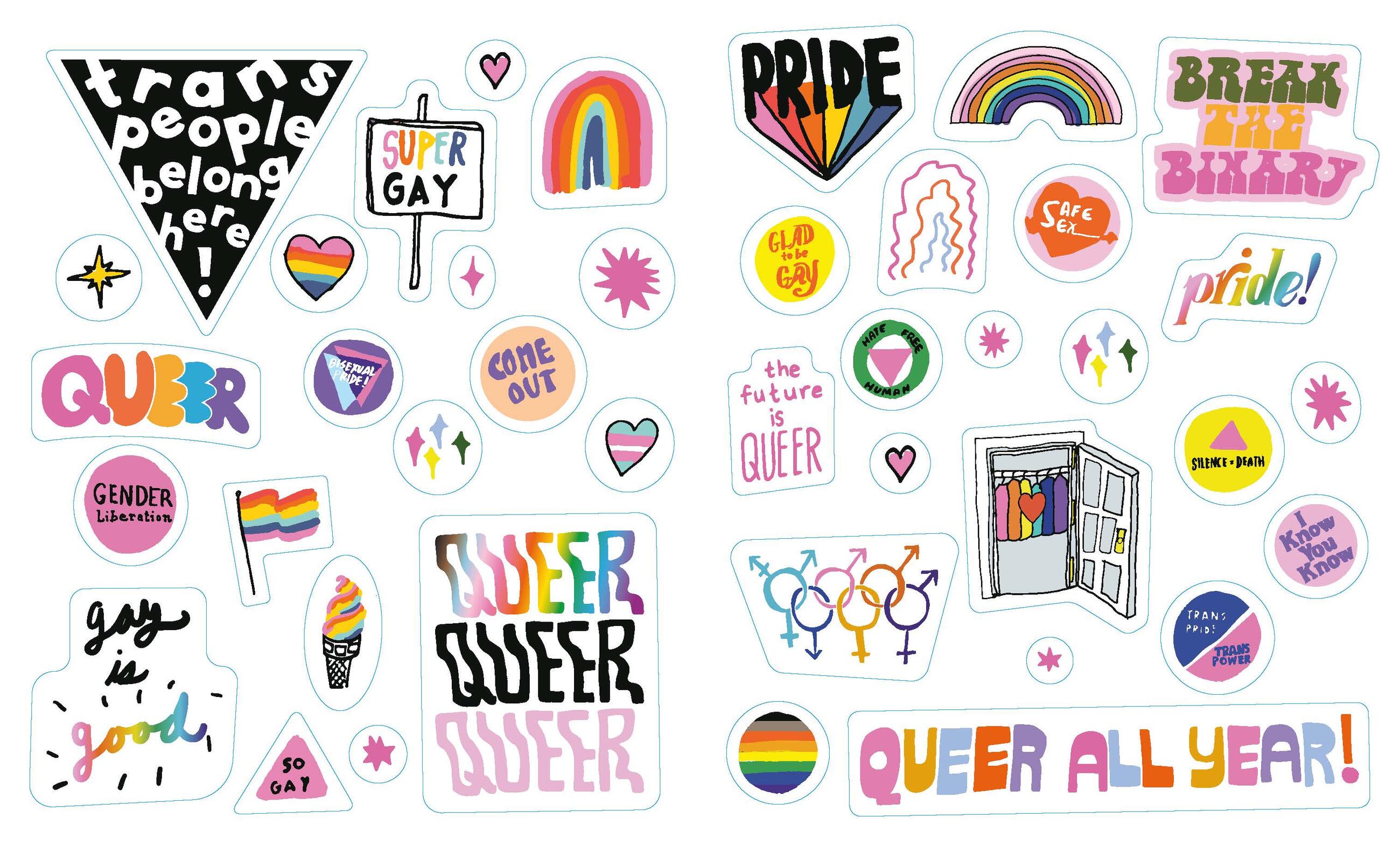 From flags and rainbows to queer slogans (Gay All Day, Queer All Year) and declarations (Protect Trans Kids), you’ll find hundreds of ways to joyfully share LGBTQIA+ pride in The Big Book of Queer Stickers.
