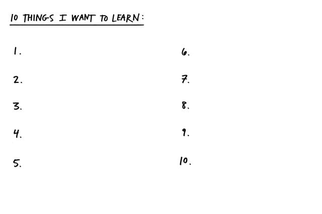 The Steal Like an Artist Journal includes page after page of ideas, prompts, quotes, and exercises are like a daily course in creativity. There are lists to fill in—Ten Things I Want to Learn, Ten Things I Probably Think About More Than the Average Person. Challenges to take. Illustrated creative exercises—Make a Mixtape (for someone who doesn’t know you) and Fill in the Speech Balloons. Pro and con charts—What Excites You?/What Drains You?