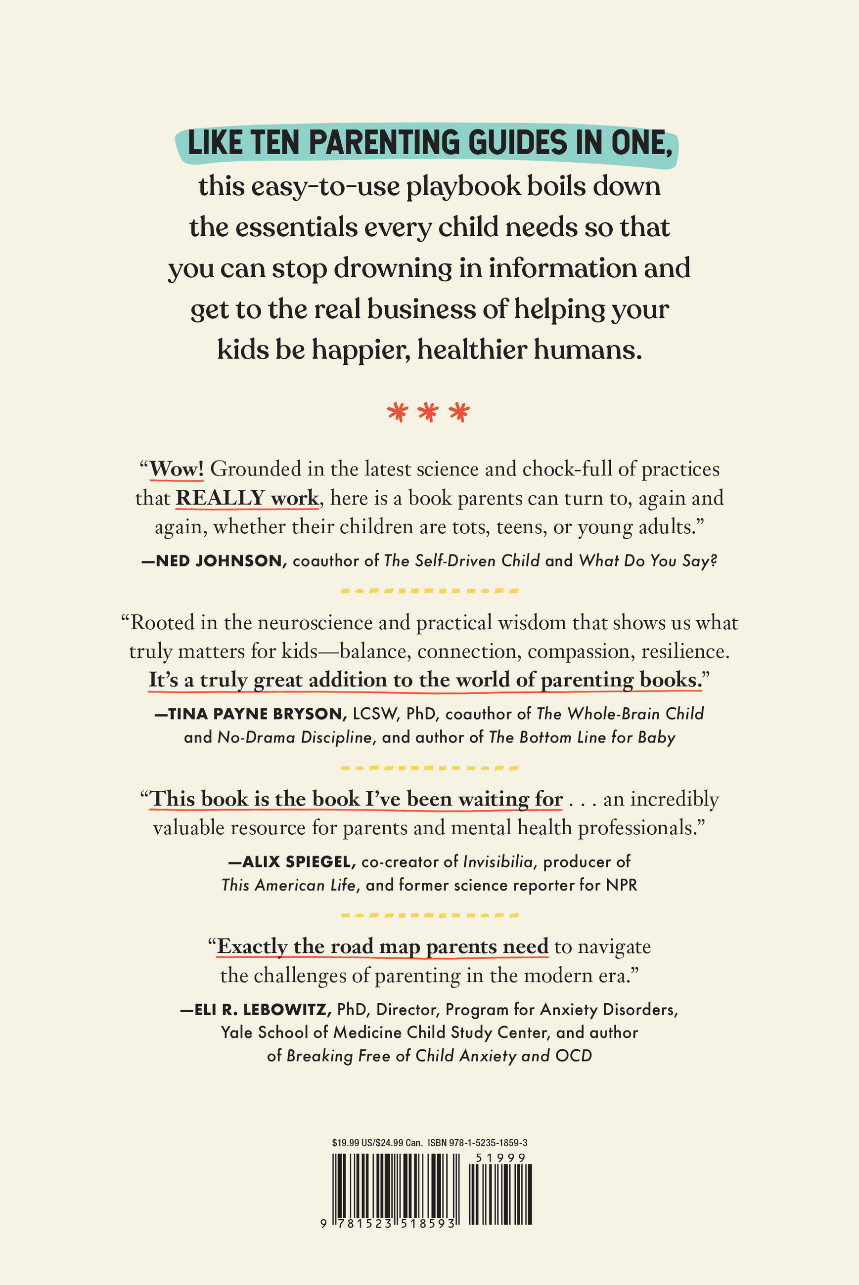 “Rooted in the neuroscience and practical wisdom that shows us what truly matters for kids—balance, connection, compassion, resilience. It’s a truly great addition to the world of parenting books.” —Tina Payne Bryson, LCSW, PhD, coauthor of The Whole-Brain Child and No-Drama Discipline, and author of The Bottom Line for Baby