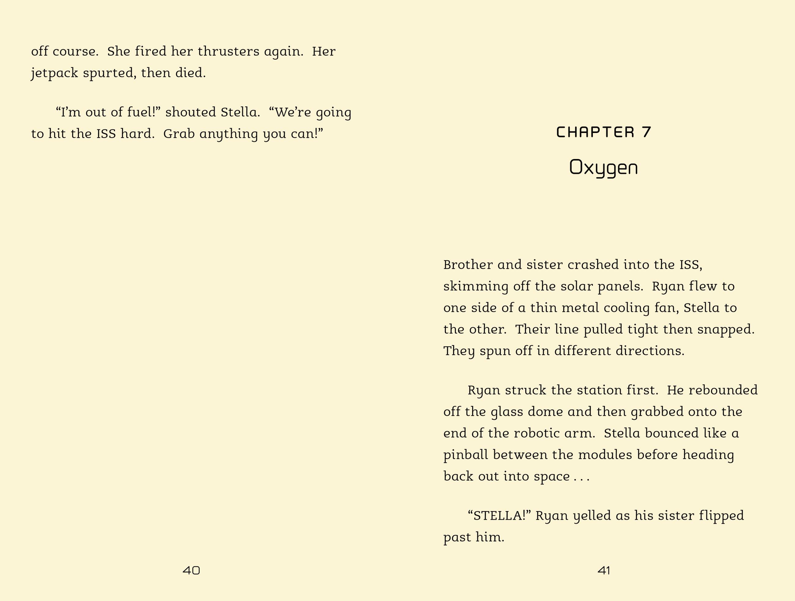 Stella is fascinated by stars, but her brother Ryan is bored with space already. Less than a week into their family vacation on the Space Hotel orbiting Earth, he’s already complaining that there’s nothing to do.