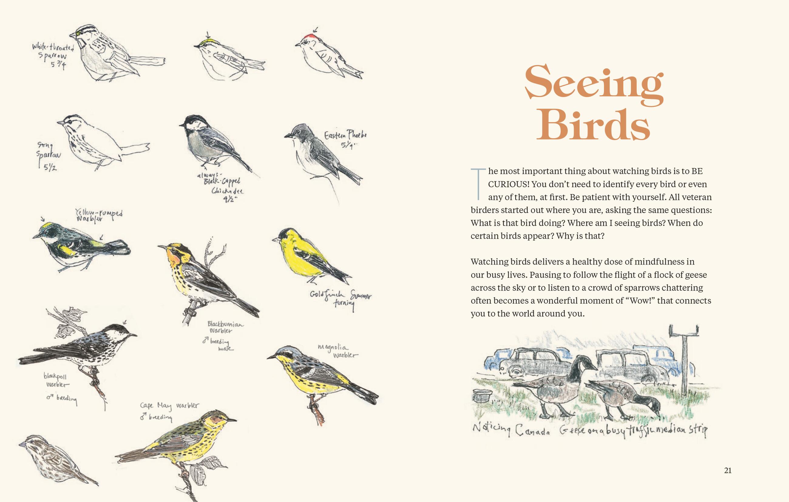 “This lovely, wonderfully accessible book is a warm and friendly invitation to pay attention to the birds around us, whether we live in a big city, on the edge of wilderness, or anywhere in between. The section on how to draw birds is especially valuable.”Laura Erickson, author of 100 Plants to Feed the Birds and contributing editor to Birdwatching magazine