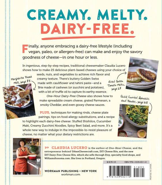 In ingenious, step-by-step recipes, traditional cheesemaker Claudia Lucero shows how to make 25 delicious plant-based cheeses using your choice of seeds, nuts, and vegetables to achieve rich flavor and creamy texture. There’s buttery Golden Swiss made with cauliflower and tahini paste—and a Brie made of cashews (or zucchini and potatoes), with a bit of truffle oil to capture its earthy essence. One-Hour Dairy-Free Cheese also shows how to make spreadable cream cheese, grated Parmesan, a smoky Cheddar, and even gooey cheese sauces.