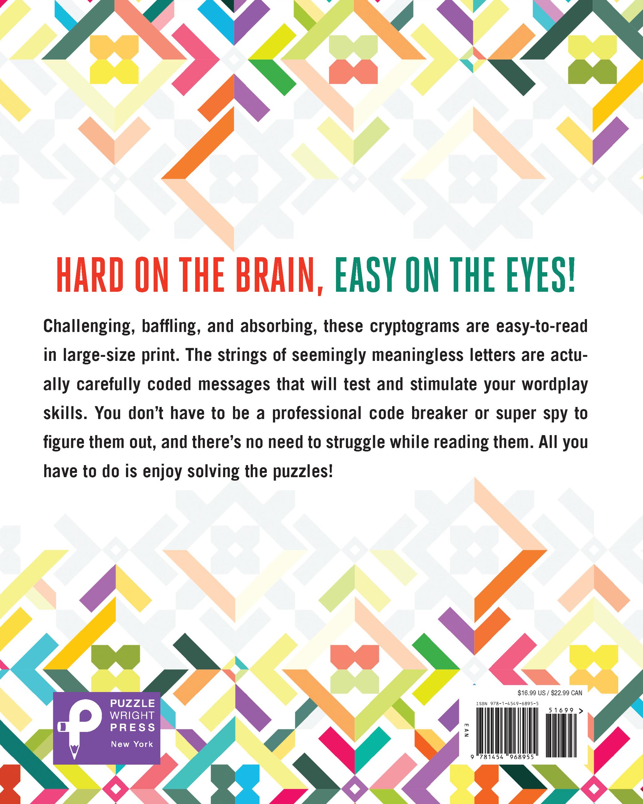Cryptograms should challenge your brain—not your eyesight! Fortunately, these 500 large-print puzzles, which come straight from the world’s largest cryptogram website, Cryptograms.org, won’t leave you struggling to read the fine print. That means everyone can enjoy solving memorable quotes from noteworthy people past and present, such as Mark Twain and John F. Kennedy.
