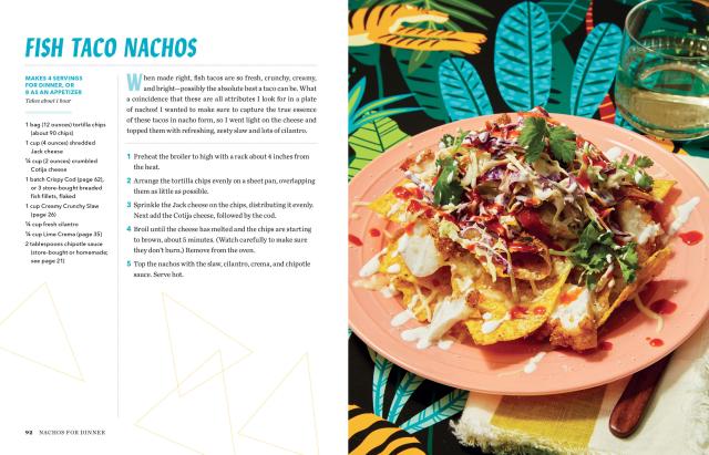 Of course there’s the chips-and-cheese classic, but then the nachos veer decidedly into dinner, with favorites from every part of the meal from French Onion Nachos, Buffalo Chicken Nachos, and Cobb Salad Nachos to Fish Taco Nachos, Banh Mi Nachos, and Shrimp and Grits Nachos. And there are plenty of not-chos (that is, nachos that use other ingredients for the chips)—like Lasagnachos, Scallion Pancake Nachos, and Pretzel and Brat’chos. Even Apple Pie Nachos for dessert.