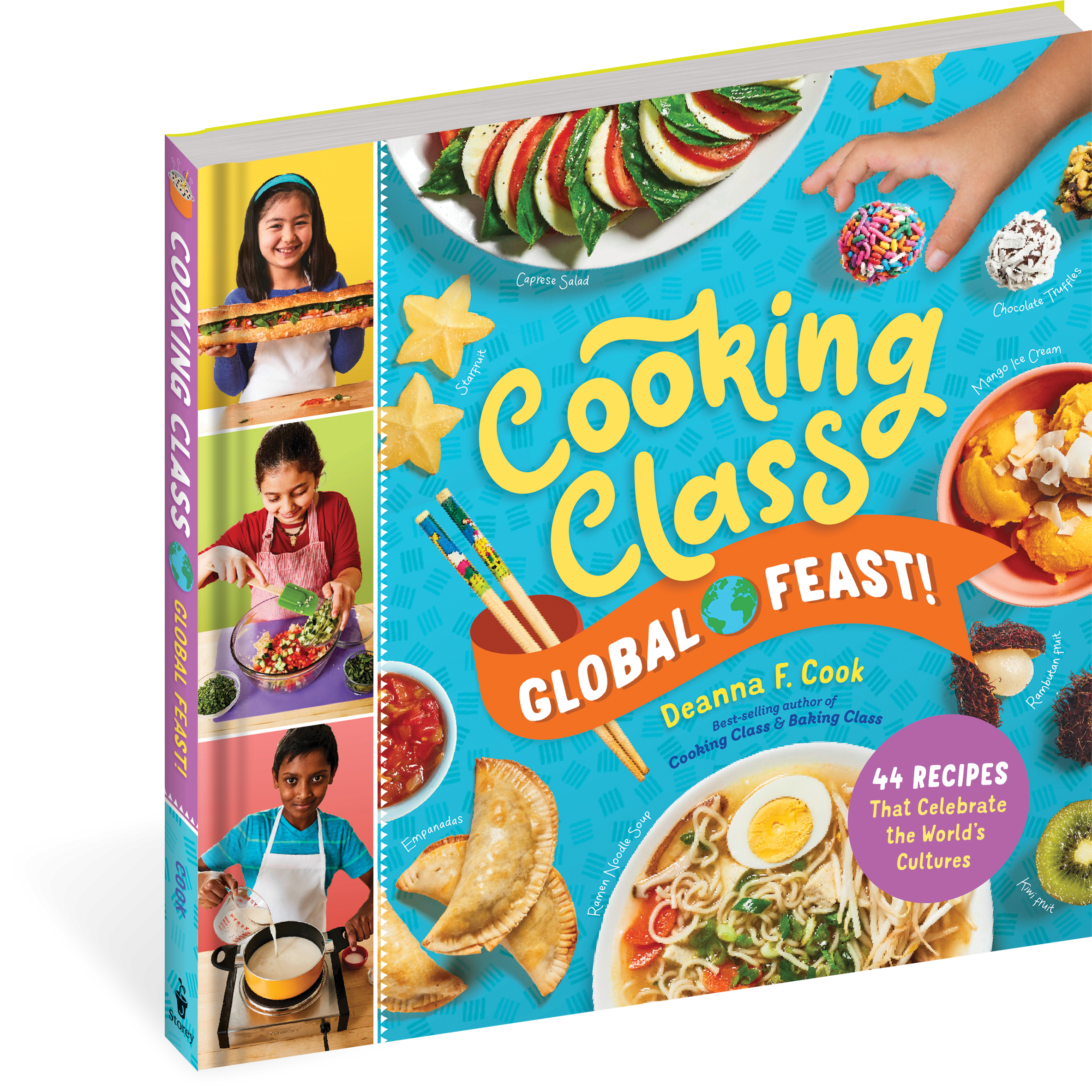 Food is a fun way to celebrate diversity, and in her new kids’ cookbook, best-selling author Deanna F. Cook leads young chefs on a tasty tour of global cultures and cuisines. Kids gain practical kitchen skills through preparing breakfasts, drinks, snacks, dinners, and desserts from around the world. Alongside recipes for foods such as Irish soda bread, ANZAC biscuits, ramen noodle soup, and mango lassi, step-by-step photography and profiles feature children from a wide range of backgrounds honoring their heritage and preparing dishes that reflect their unique food traditions. A pop-out food passport, world language flash cards, and flag stickers provide additional fun on their global food journey, while infographics encourage taste-test explorations of fruits, drinks, breads, vegetables, and ice creams from around the world. Kids will be inspired to expand their palates as they cook, discovering new flavors while developing pride and appreciation for the foods they’ve grown up with.