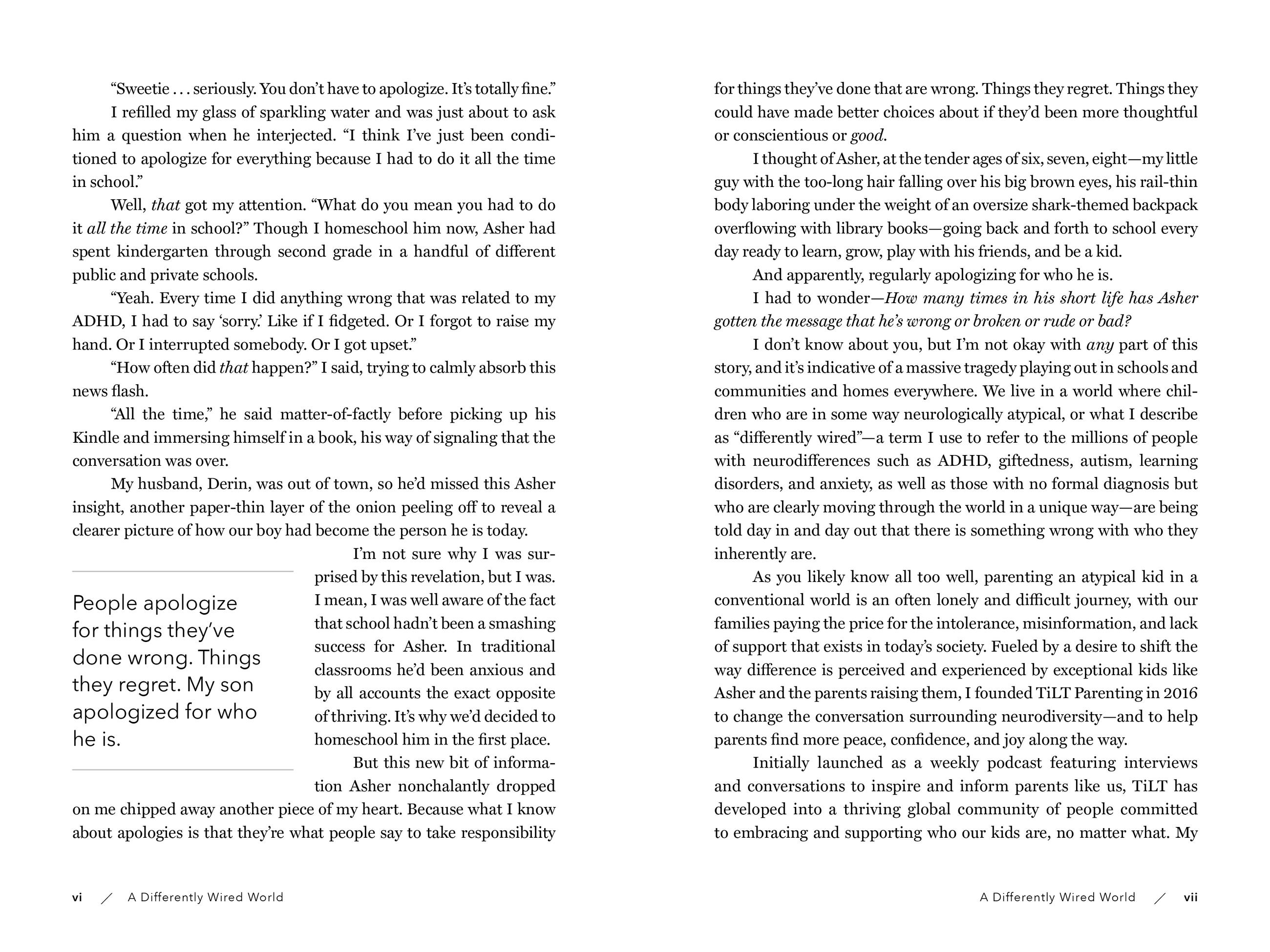 A how-to, a manifesto, and a wise and reassuring companion for parents of neuroatypical children, who often feel that they have no place to turn, Differently Wired offers 18 paradigm-shifting ideas—what the author calls “tilts”—that will change everything, including how to Get Out of Isolation and Connect, how to Help Your Kids Embrace Self-Discovery, and how to Show Up and Live in the Present. And through theses “tilts,” how to stay open, pay attention, and become an exceptional parent to your exceptional child.