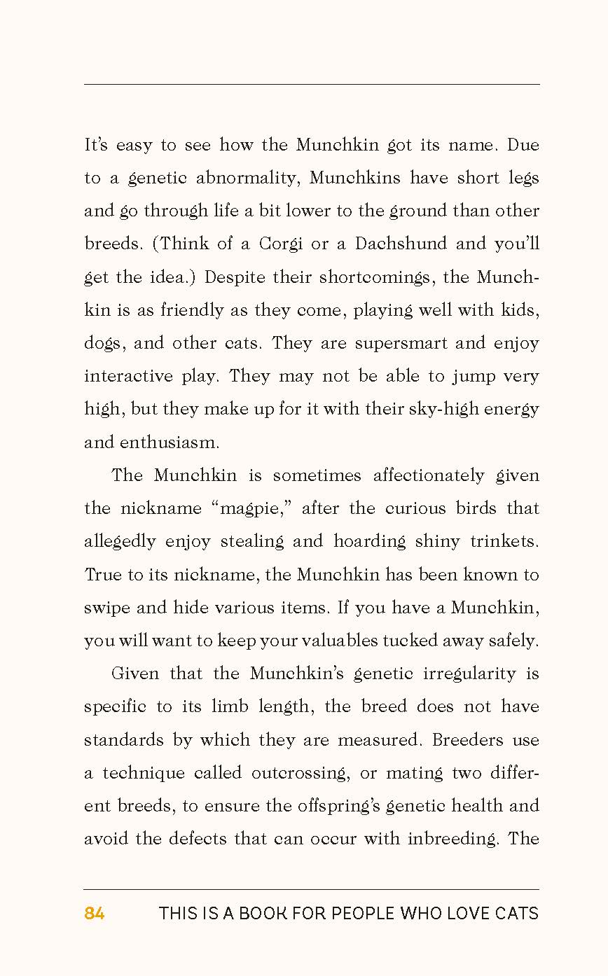 For cat lovers of all ages, this beautifully illustrated guide offers an informative look at the world and lives of cats. Cat enthusiast Eliza Berkowitz highlights why we love cats so much, how cats became domesticated, and just what they’re doing and saying with their odd behavior. Fascinating profiles of cat breeds, from Maine Coons and Calicos to Bengals and Egyptian Maus, are accompanied by charming illustrations that will make you fall in love with cats all over again… and again. Comprehensively researched and shared in an accessible, appealing format, This Is a Book for People Who Love Cats is a purr-fect addition to every cat lover’s library.