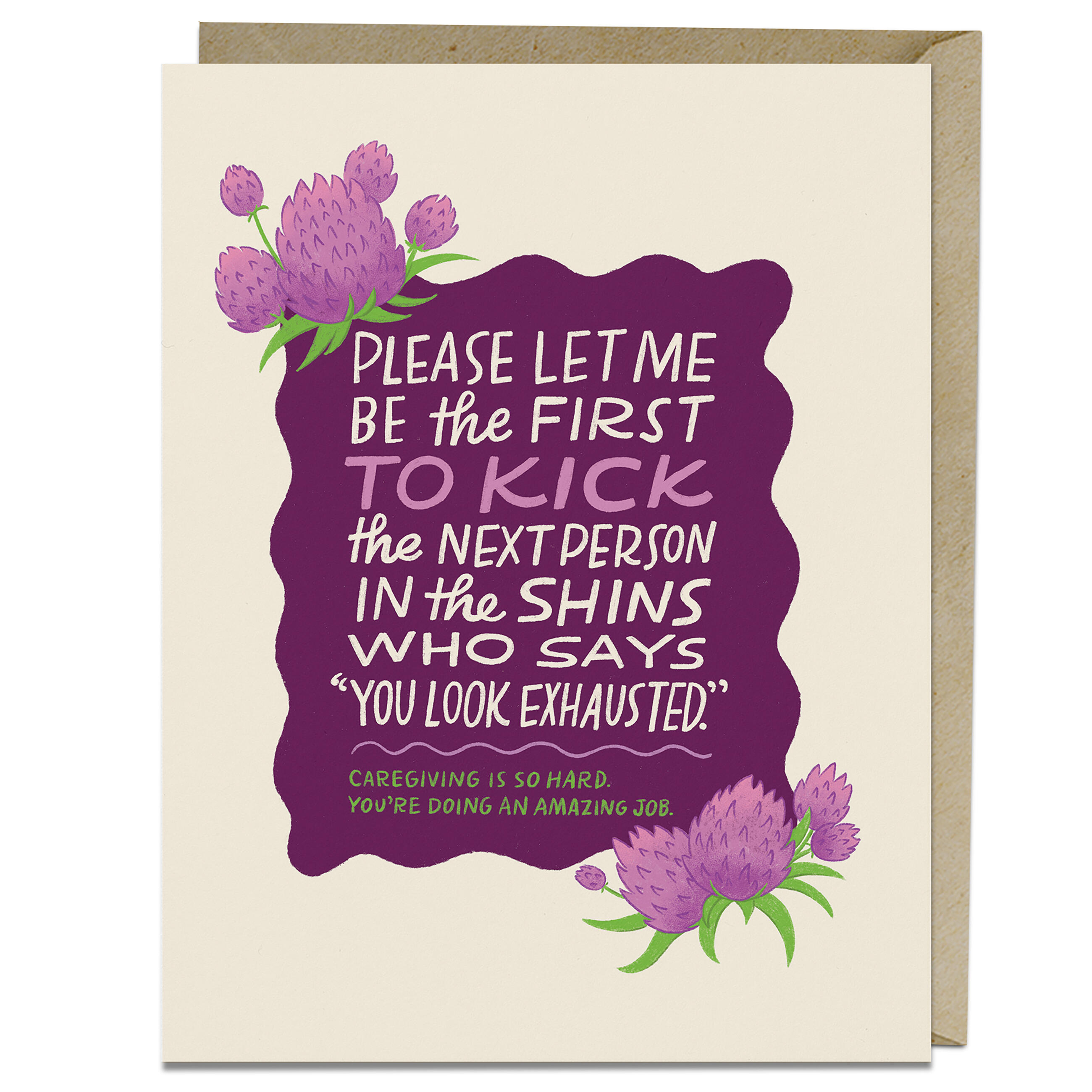 When people they say things like “you look exhausted!” they might think they’re being supportive. But trust us, no one wants to hear that, even if they are exhausted. (Maybe especially then?!) This greeting card lets the hardworking caregiver in your life know that you know just how hard it is to take care of other people day in and day out. Best of all, it’s going to make them laugh.