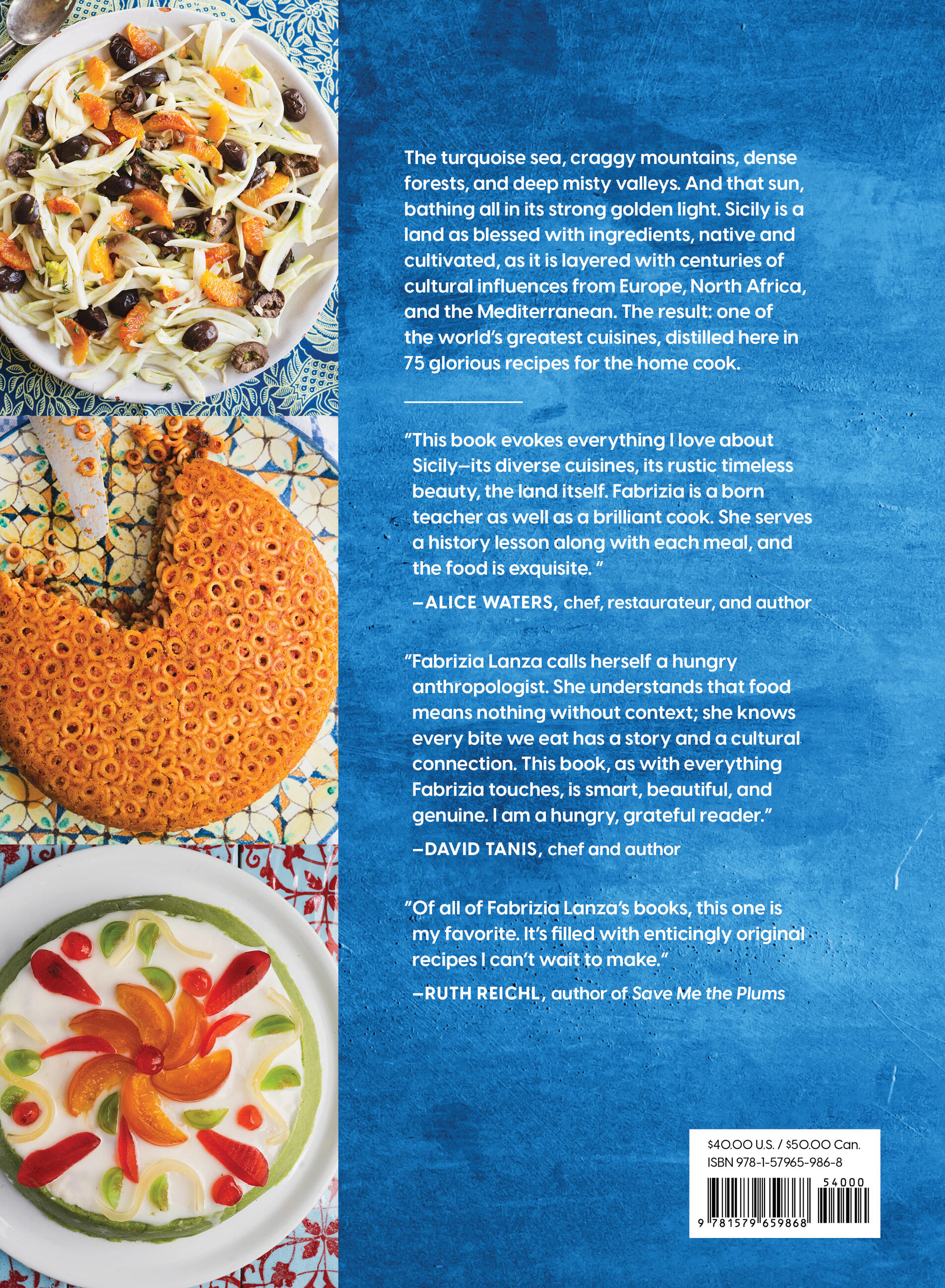 “This book evokes everything I love about Sicily—its diverse cuisines, its rustic timeless beauty, the land itself. Fabrizia is a born teacher as well as a brilliant cook. She serves a history lesson along with each meal, and the food is exquisite.”Alice Waters, chef, restaurateur, and author