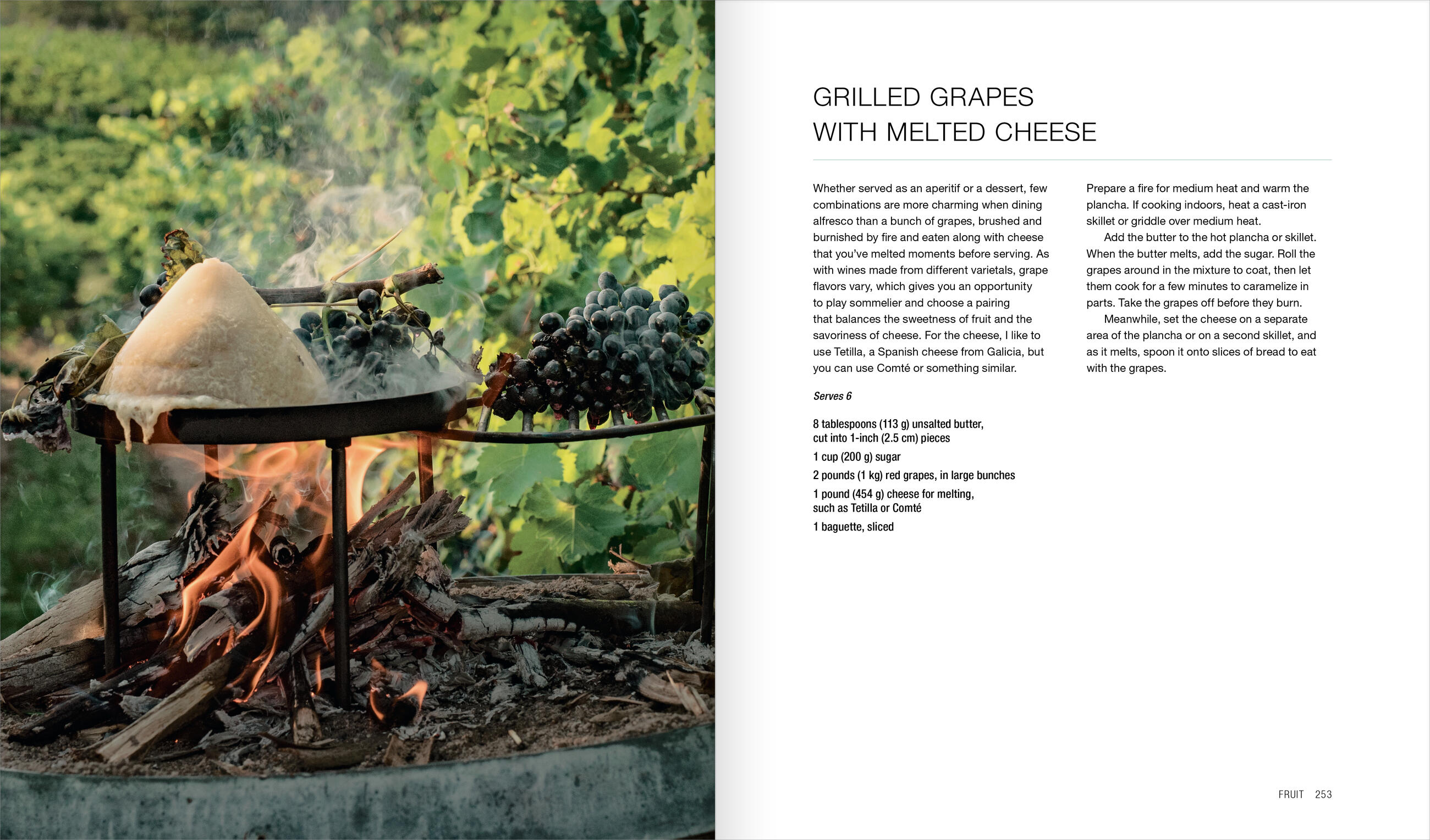 The fruit desserts alone confirm live fire’s ability to transform and elevate any ingredient. Mallmann roasts whole pineapples, grills grapes, chars cherries, and then finds just the right unexpected match—melted cheese, toasted hazelnuts, Campari granita—to turn each into a simple yet utterly entrancing dish.