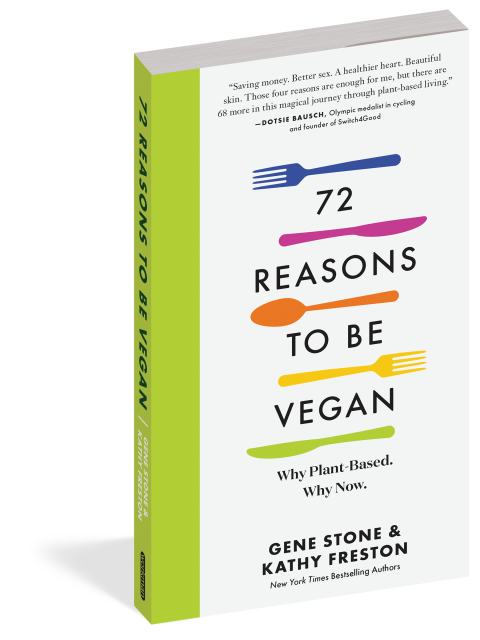 Those are just some of the 72 reasons we should all be vegan, as compiled and persuasively argued by Gene Stone and Kathy Freston, two of the leading voices in the ever-growing movement to eat a plant-based diet. While plenty of books tell you how to go vegan, 72 Reasons to Be Vegan is the book that tells you why. And it does so in a way that emphasizes not what you’d be giving up, but what you’d be gaining.