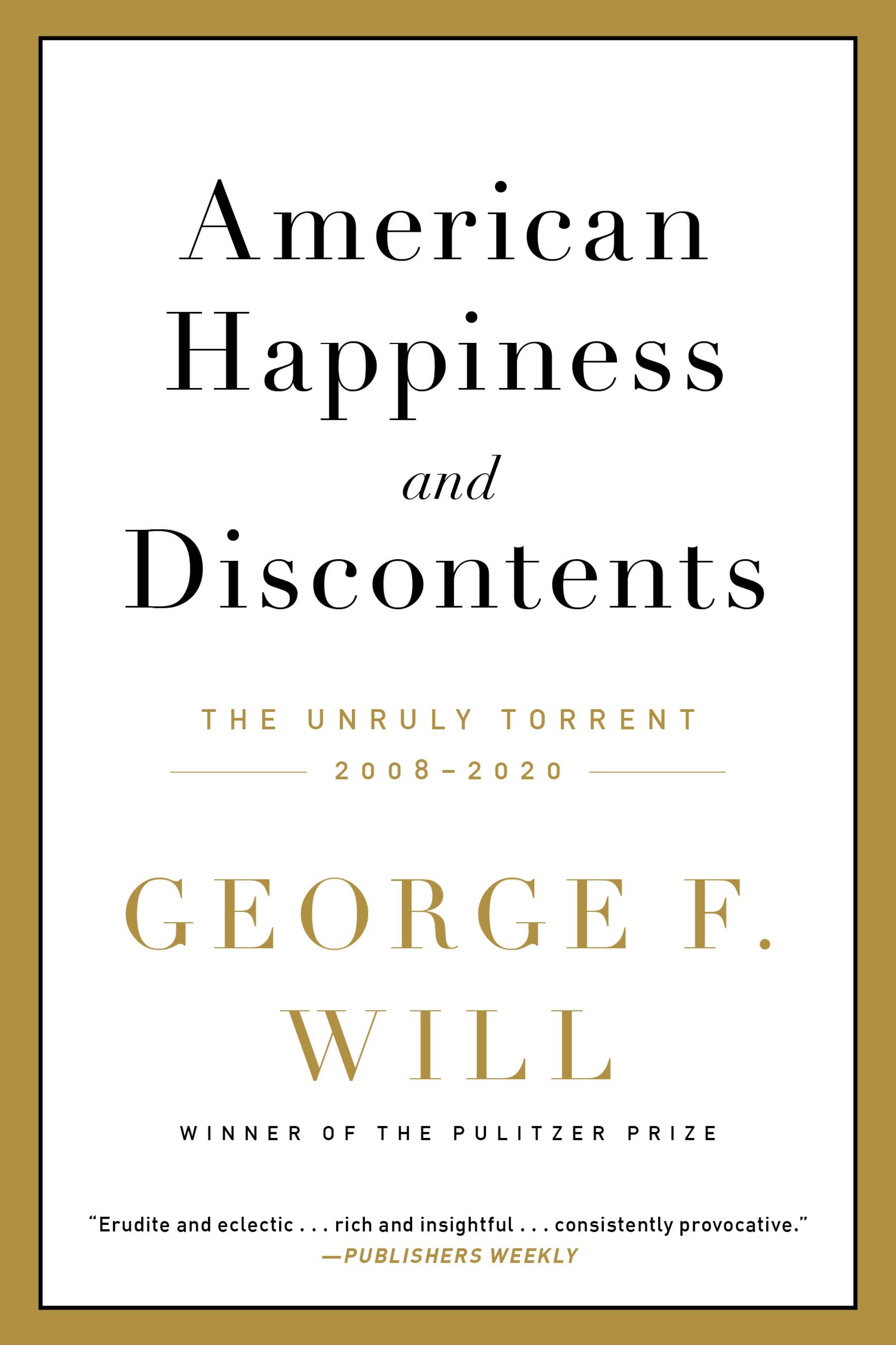 “Thoroughly brilliant…George Will outdoes George Will…. His latest collection…is nothing short of spectacular…. Every column had me wanting more…. Will’s book is an antidote to the present level of discourse, and most fun for readers eager to learn well beyond policy is that so much of Will’s commentary springs from the voluminous books he consumes with great vigor…. [T]his most excellent of books is in many ways about books, and will have the reader ordering all manner of new ones after reading commentary that springs from the reading of them by Will. American Happiness teaches a great deal, but also sets the stage for a great deal more learning…. Easily the best part of what is so good on so many levels is what the reader will learn about the world, past and present…. This is a soaring book…. With American Happiness, there’s a sense that Will himself is happier about the world. This is not to say that he’s thrilled about where the proverbial “we” are in total (see the introduction), but this curation is not that of someone who sees the U.S. in decline."Forbes