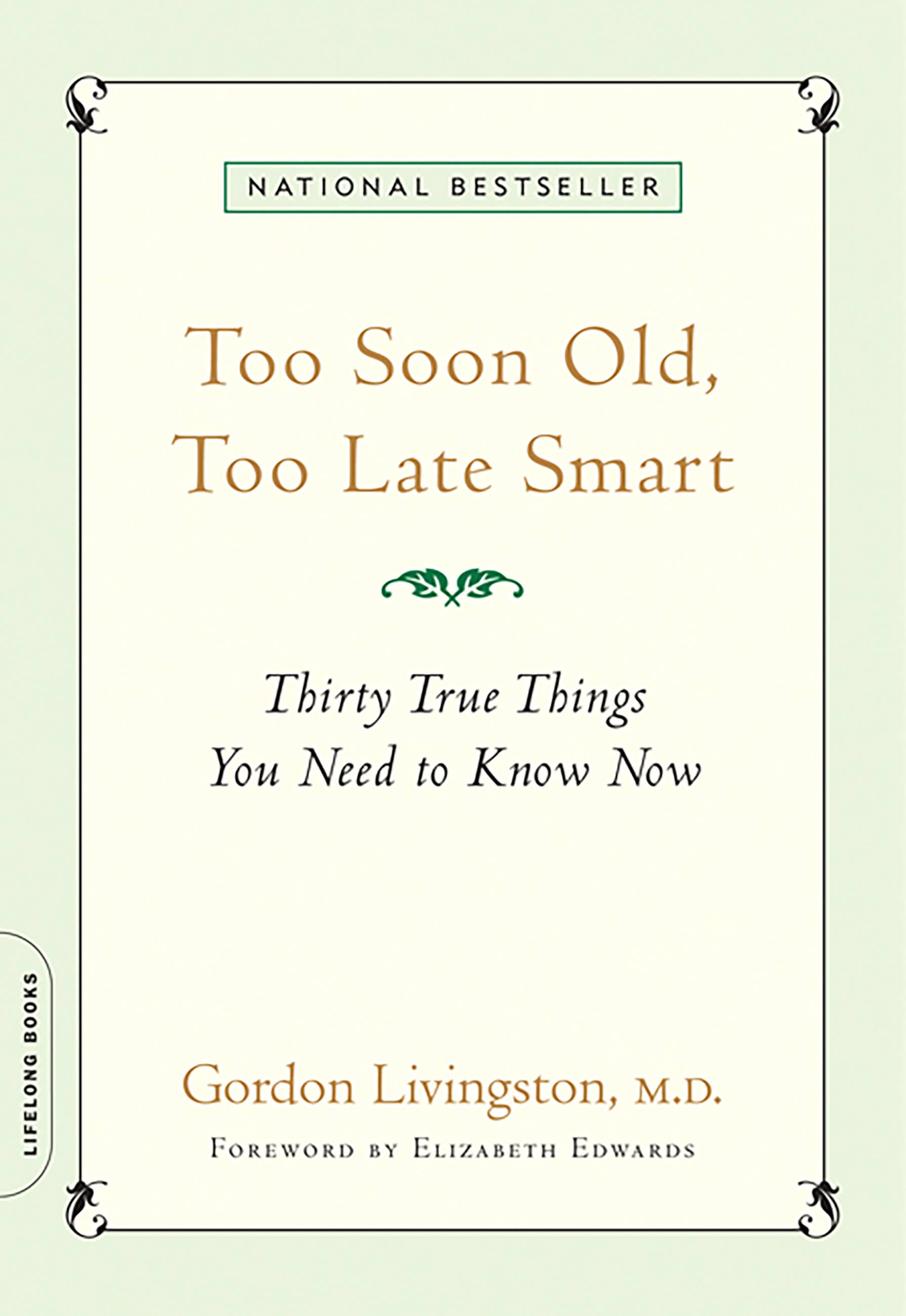 Full of things we may know but have not articulated to ourselves, Too Soon Old, Too Late Smart offers solace, guidance, and hope to everyone ready to become the person they’d most like to be.