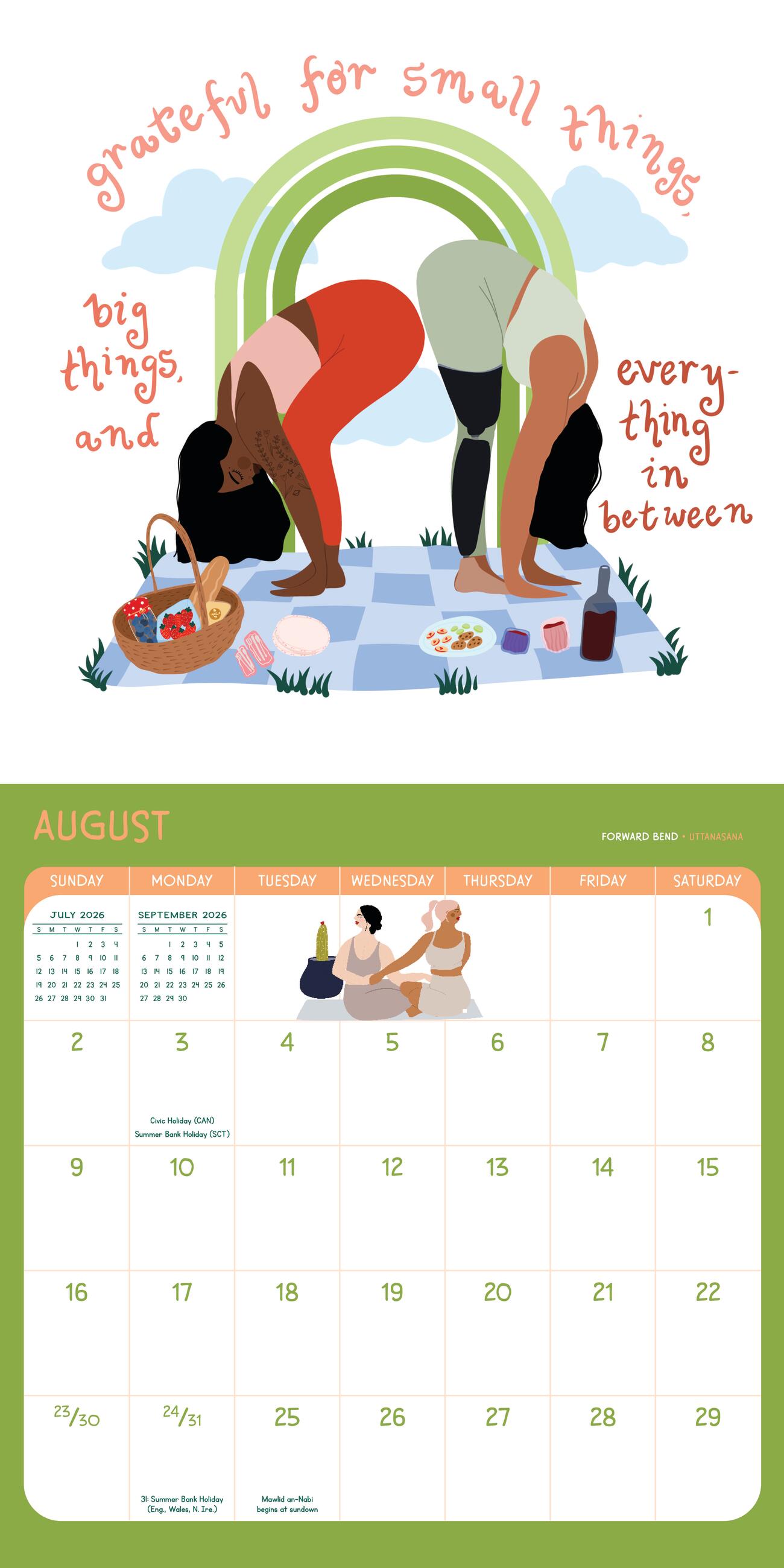 - UNIQUE YOGA CALENDAR: Celebrate inclusivity and body positivity with this calendar that shows there’s room for everybody on the mat by featuring a wide range of body types and ages.