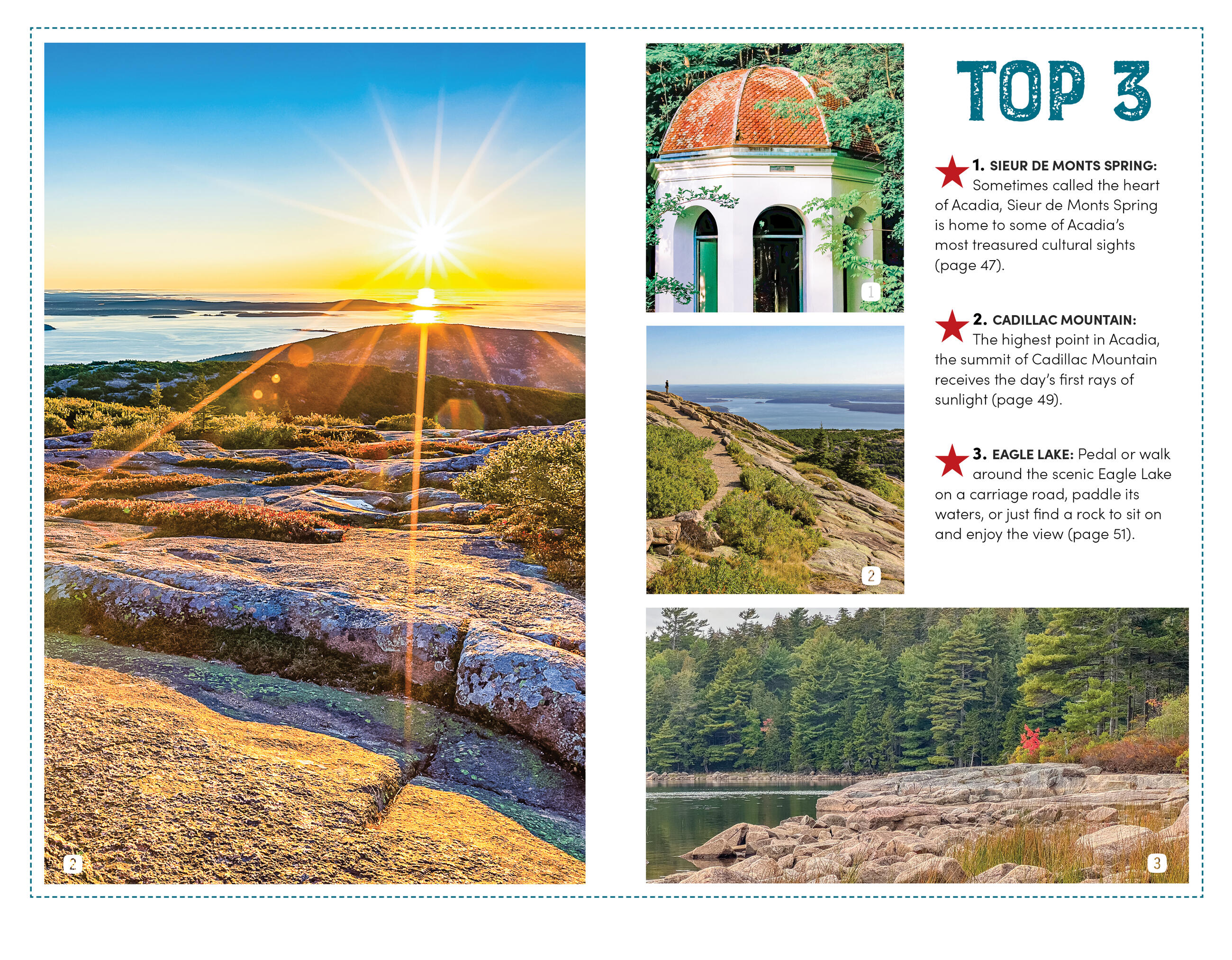 • Easy itineraries for one to three days in Acadia National Park, from a morning drive along the Park Loop Road, to a day hike on Cadillac Mountain, to a full weekend exploring the park