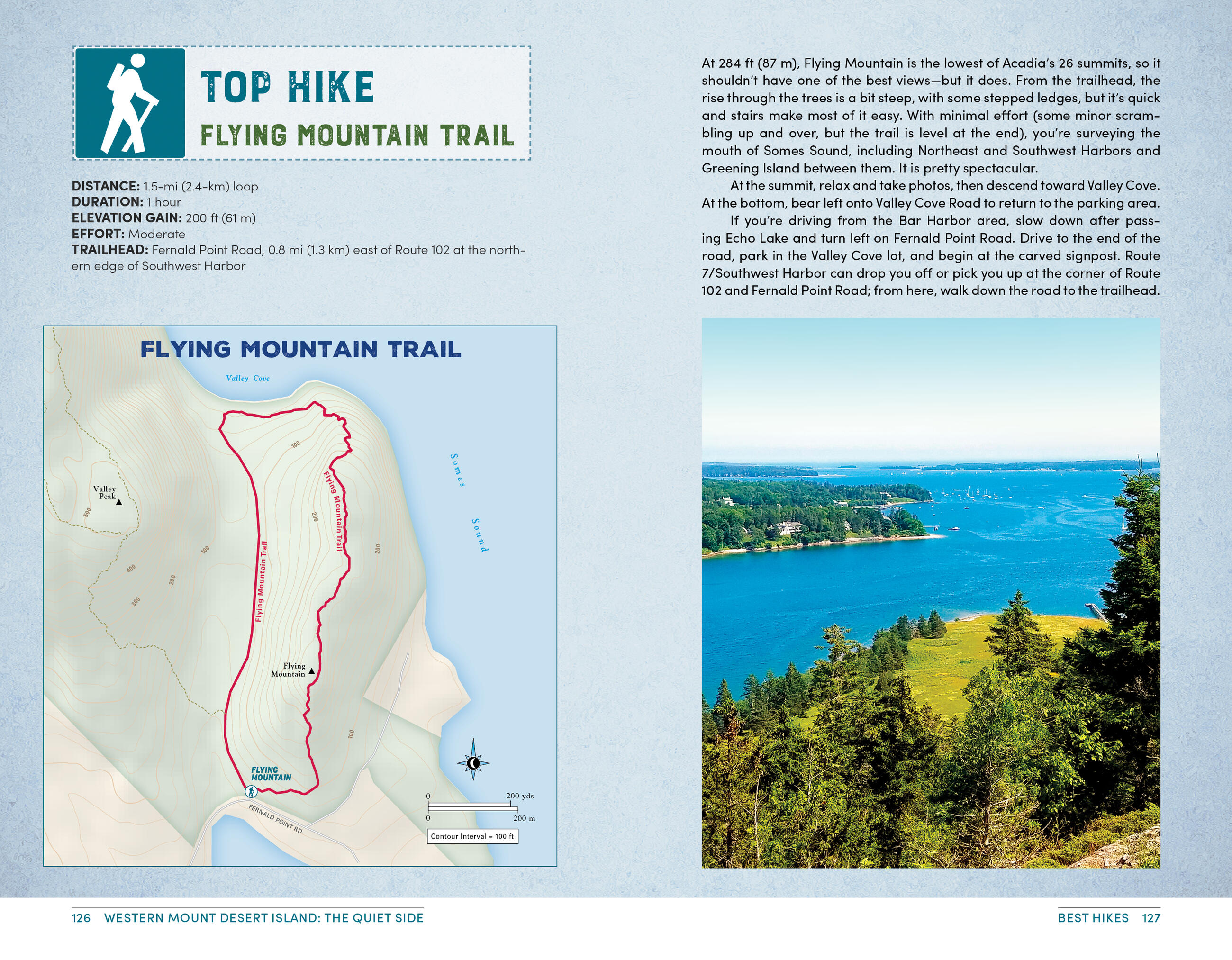 • The top hikes in Acadia: Whether you’re looking to stretch your legs for a couple hours or challenge yourself to a full day hike, you’ll find trailheads, detailed trail descriptions, individual maps, mileage, and elevation gains