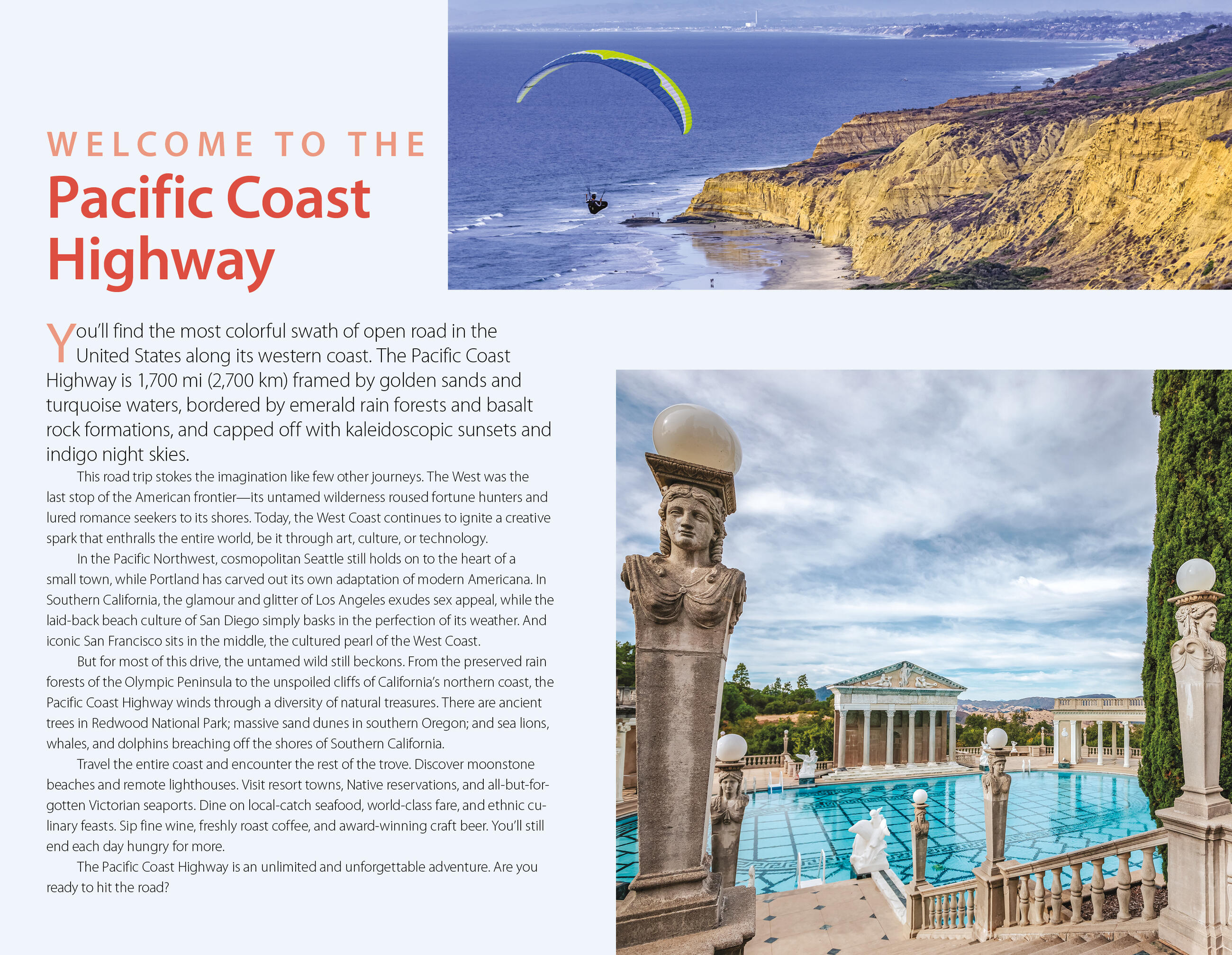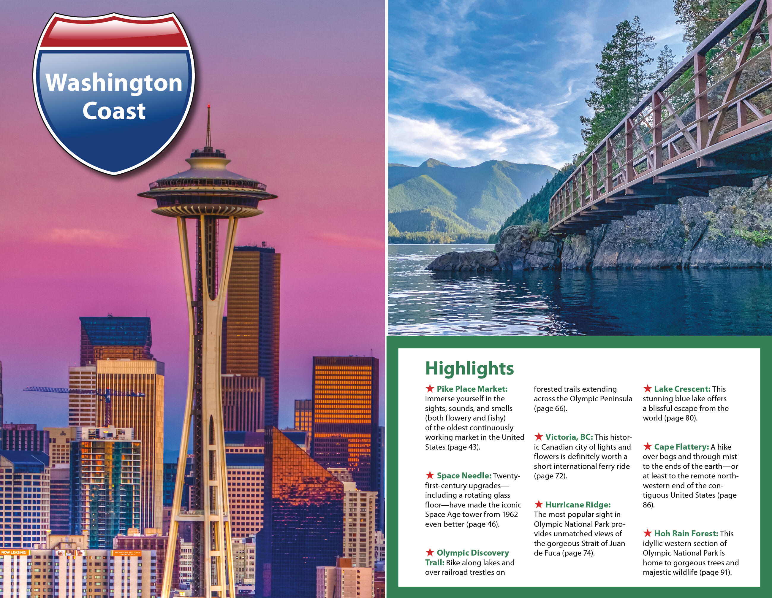 - Flexible itineraries: Drive the entire three-week route or follow suggestions for shorter regional getaways in Washington, Oregon, and California