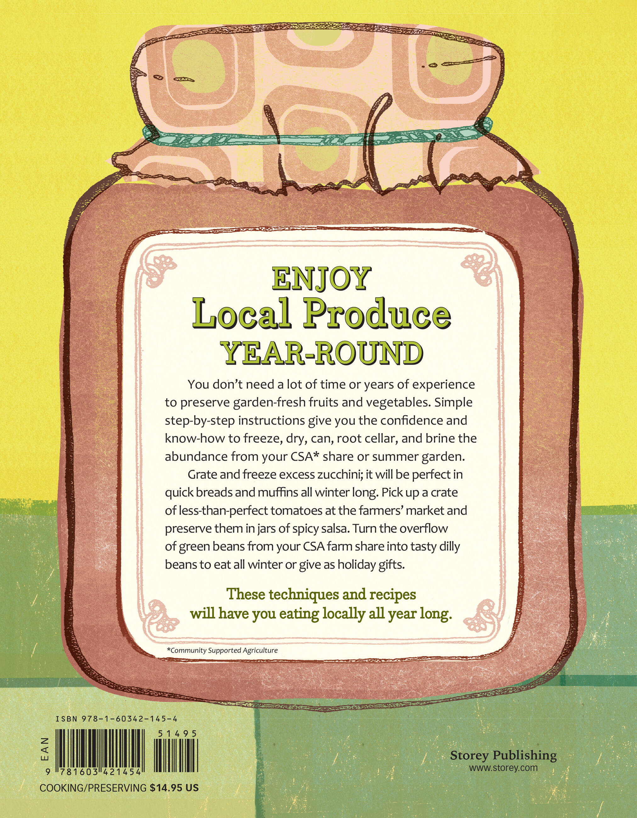 Freeze, dry, can, root cellar, and brine your favorite produce right at home. For those with a bounty of fresh produce but short on time, Janet Chadwick’s introduction to the world of preserving provides step-by-step instructions and inspiring easy-to-follow recipes. Preserving tips, hints, and shortcuts, along with guidance on essential time-saving equipment and methods for keeping vegetables, fruits, and herbs at peak freshness until you’re ready to work with them give busy home cooks greater flexibility in making the harvest last. Discover the best and quickest techniques for root cellaring, freezing, canning, and drying everything from asparagus to winter squash, from apples to strawberries. Then dip into recipes for pickles, relishes, sauerkraut, sauces, jams, marmalades, and more. A troubleshooting chapter answers frequently asked questions and a selection of recipes for quick harvest dishes serves up stress-free, healthy mealtime inspiration that makes the most of the fresh foods you’re already processing. So pick up a crate of inexpensive, less-than-perfect tomatoes at the farmers’ market and turn them into jars of spicy salsa or buy a few extra peaches and can a delicious batch of jam to serve with breakfast. You’ll extend the summer harvest and find yourself serving up delicious, locally grown food all year long.