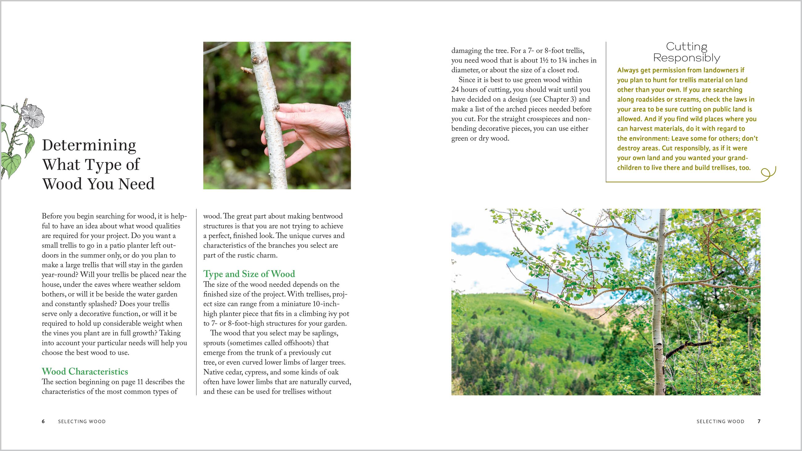 Nothing combines natural beauty and functionality more gracefully than a rustic bentwood trellis, arbor, gate, or fence for your outdoor space. With clear illustrated step-by-step instructions you’ll learn how to collect limbs from a wide variety of native trees as a part of routine pruning and then use those limbs to make beautiful, sturdy bentwood projects. A list of vining plants that grow well on trellises and arbors is also included. In just one day, learn how to make: