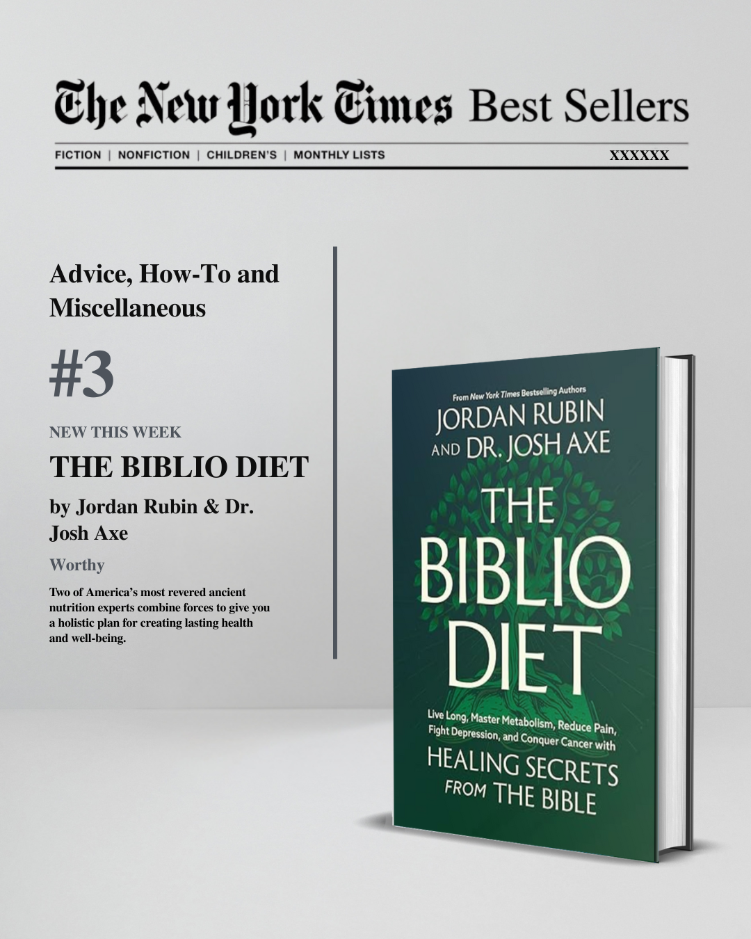 “The Biblio Diet is a bold return to ancient wisdom rooted in modern science. It’s not just a diet—it’s a divine blueprint for healing, purpose, and long life. Jordan and Josh are leading a health revolution from the soil to the soul—and this book is your invitation.”Daniel Amen, MD, Founder of Amen Clinics, New York Times bestselling author of Change Your Brain Every Day