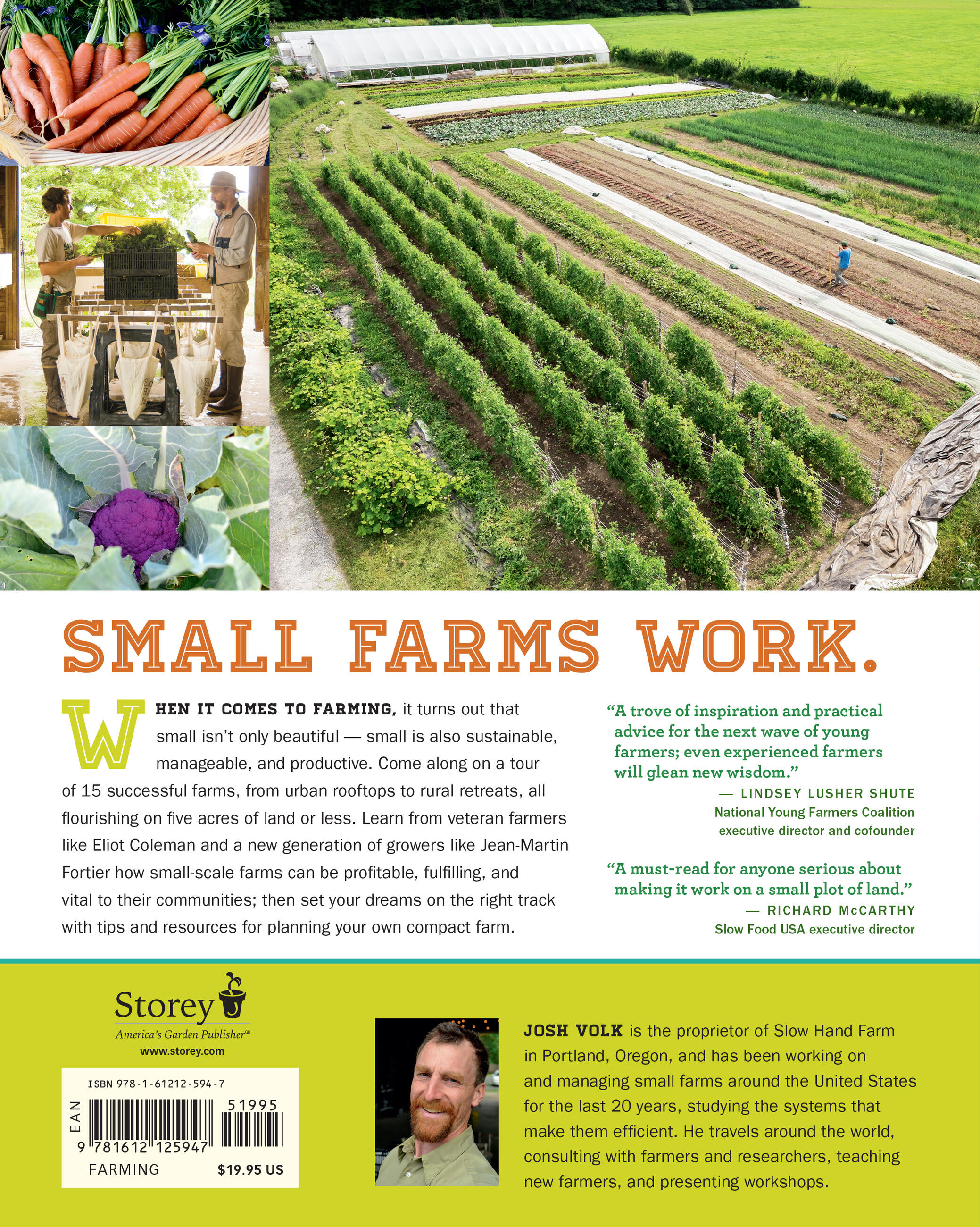 “With both the business analysis and schematics of these small agricultural operations, this book is truly “human-scaled.” Josh Volk reveals that there is an alternative to the hype of get big or get out. This is a must read for anyone serious about making it work on a small plot of land.” — Richard McCarthy, Slow Food USA executive director