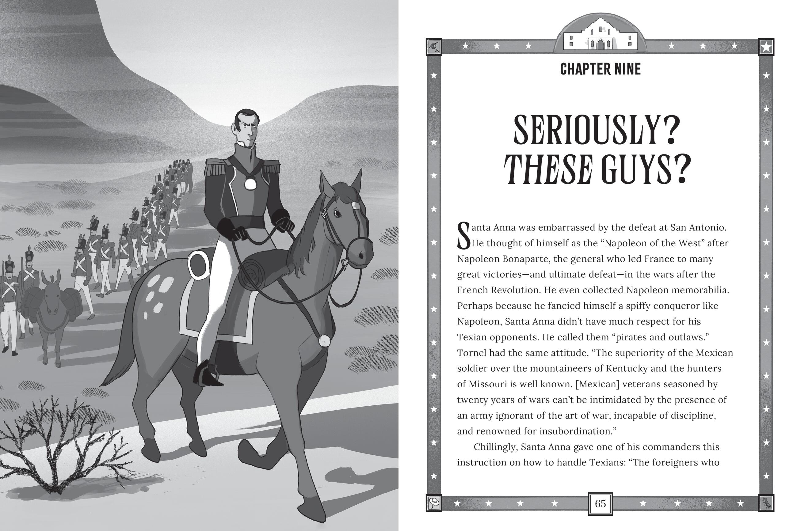 The Mexican government wasn’t so sure about that. But as more and more settlers moved in, the big personalities, rash decisions, and grand proclamations piled up. When these new “Texians” decided to declare independence, fighters like William Travis, Jim Bowie, and David Crockett came forward to resist the proud General Antonio López de Santa Anna and his army. They would face off at an old church in San Antonio, known as the Alamo.