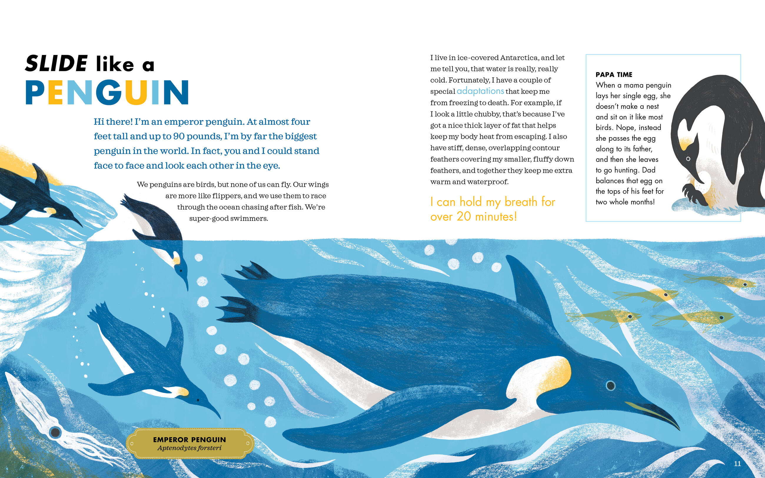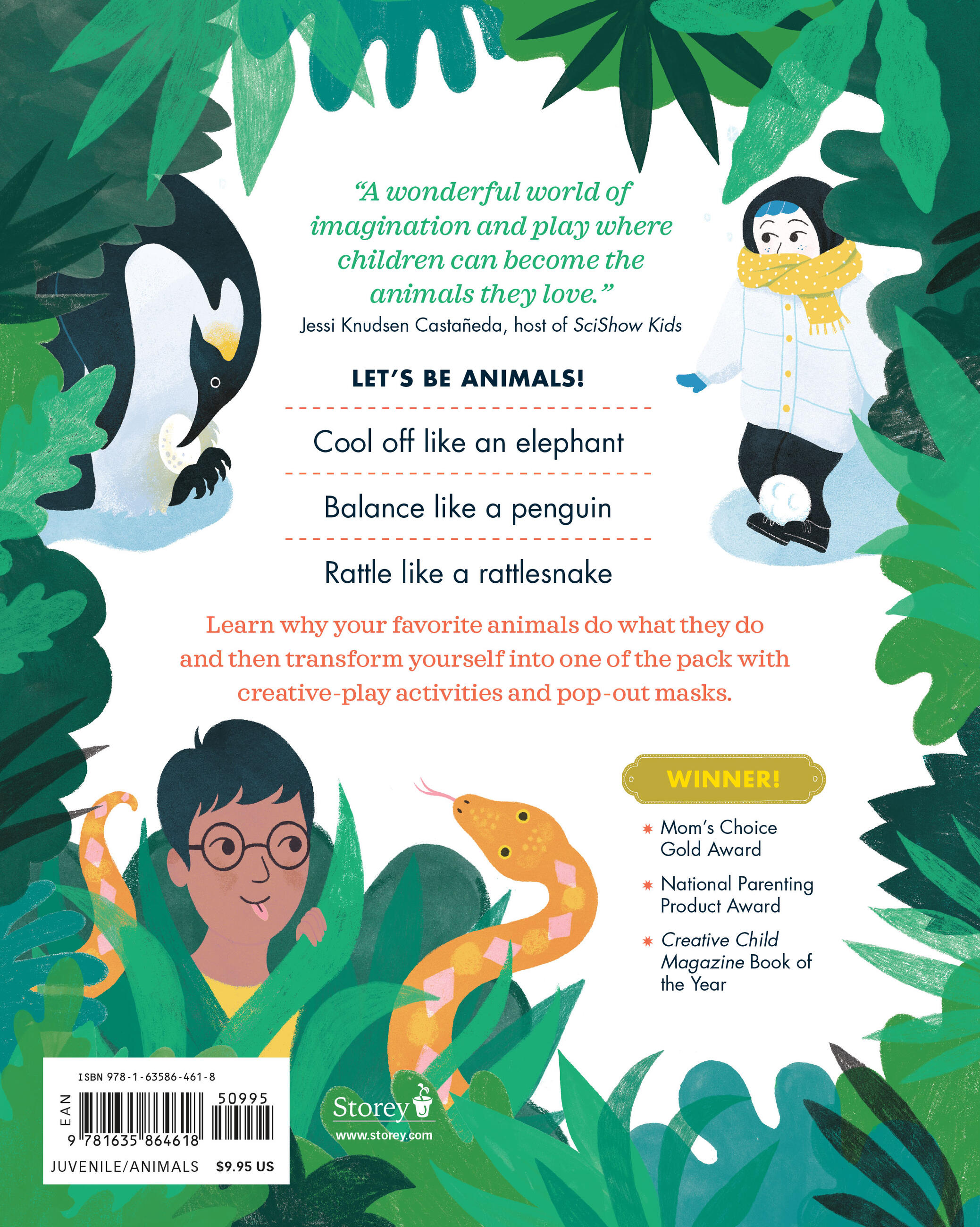 Wildlife field biologist Kathleen Yale takes kids on a journey through the wonders of the animal kingdom, exploring the distinctive habits and behaviors of thirteen different mammals, reptiles, and insects from around the world. In charmingly illustrated spreads, the animals introduce themselves, where they live, and their key behaviors such as camouflage, pollination, and foraging. Then engaging activities teach kids how to “think like an animal” by mimicking each animal’s distinctive habits, movements, and sounds – from balancing an egg like an emperor penguin to stalking like a camouflaged leopard.