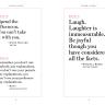 Created by Kathryn and Ross Petras, connoisseurs of quotes, whose books and calendars have over 56 million copies in print, “Dance First. Think Later.” is a collection of the greatest life wisdom from an unexpected group of speakers, doers, and thinkers. There are 618 rules to live by—funny, sly, declarative, thoughtful, offhanded, clever, and always profound: