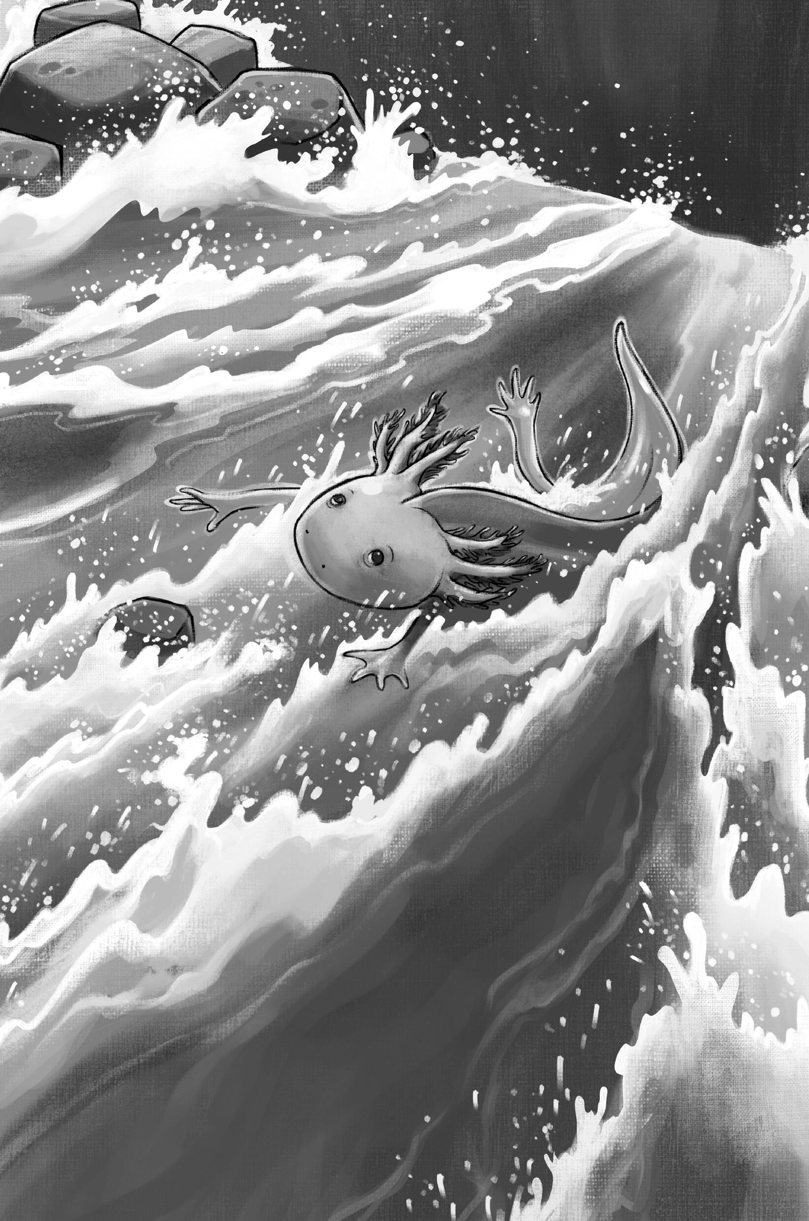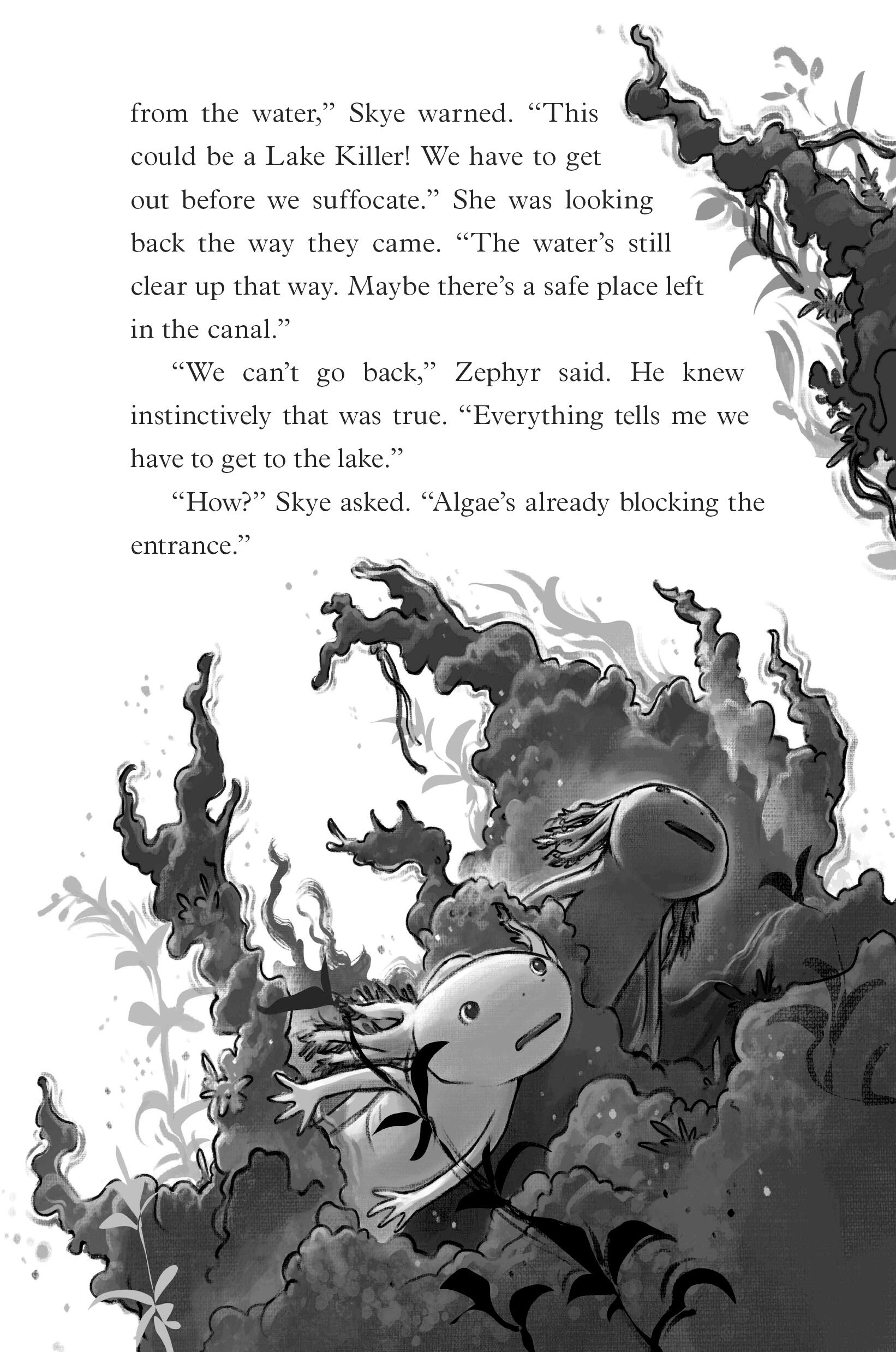 Feeling betrayed, Zephyr sets off on his own and soon encounters Jasper, an ambitious axolotl hungry for power. Zephyr quickly finds himself embroiled in a fight between some axolotls who believe regeneration is the key to survival and others who want to evolve into salamanders and roam free. The struggle for power is vicious, and there are many more dangers waiting for them around the lake.