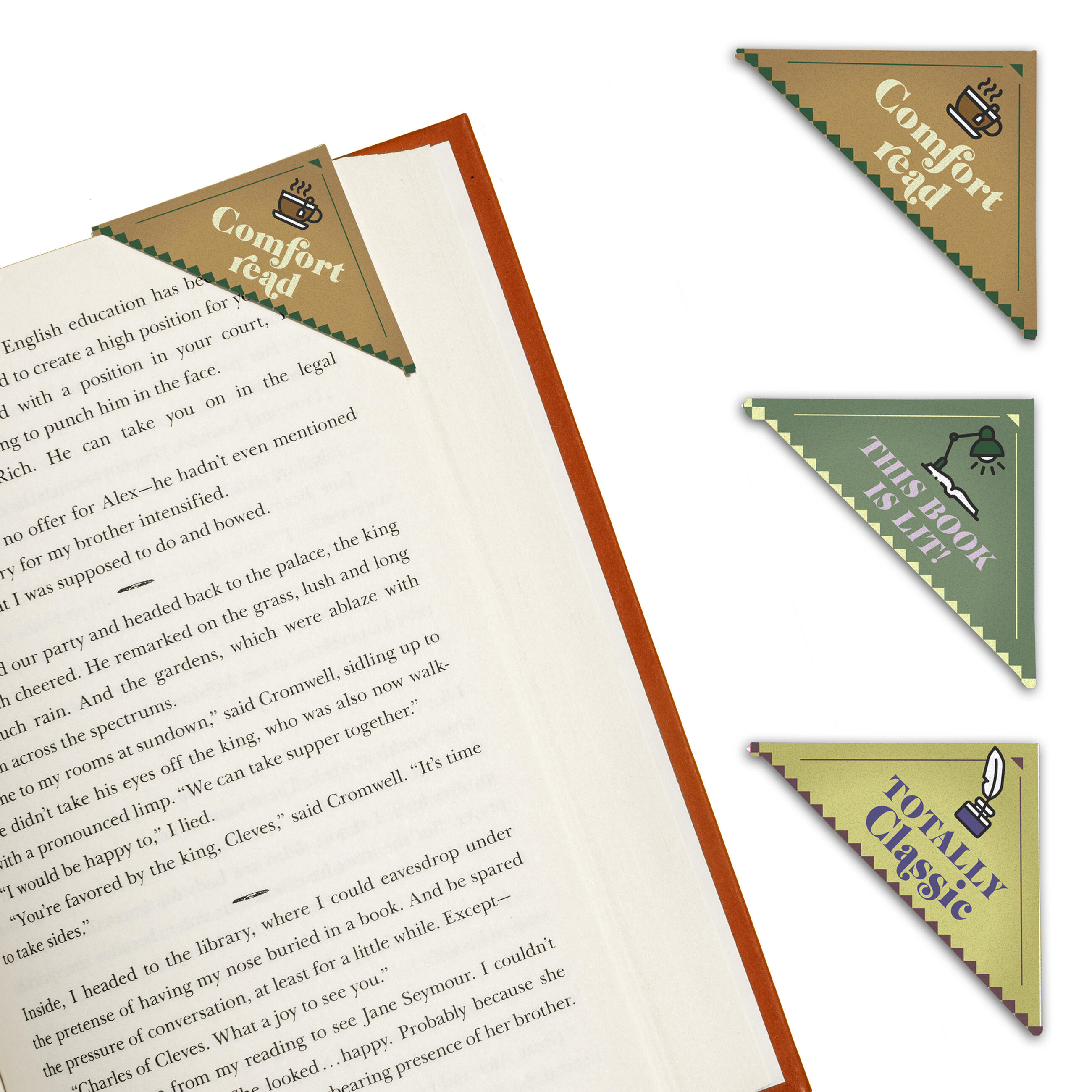 Book lovers agree: you can never have too many books . . . or bookmarks! These unique corner bookmarks hold your spot, prevent dog-ears, and let you self-identify as a connoisseur of the classical canon!
