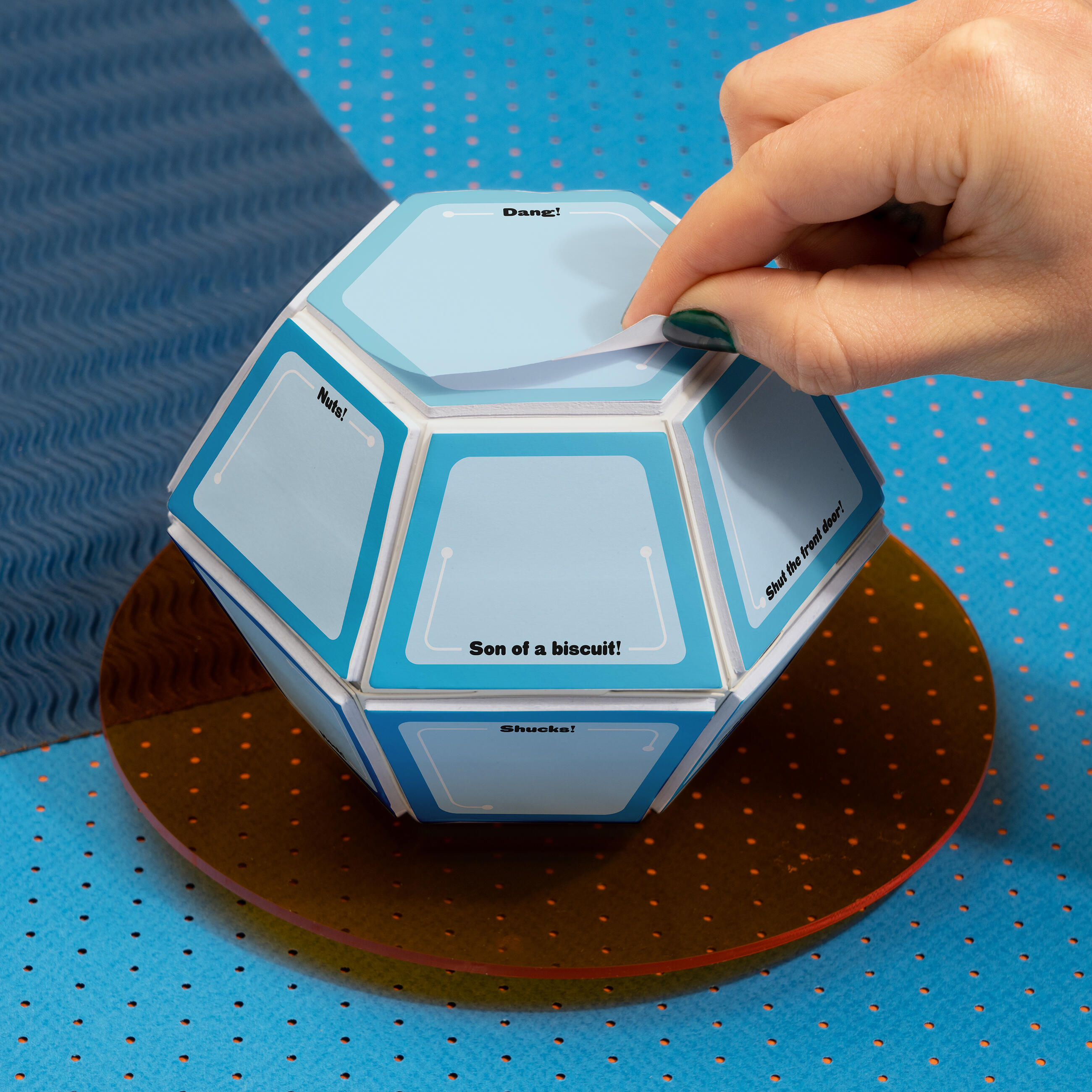 It’s a Sticky Thingy! This totally-safe-for-work sticky note ball-thing looks cool and has 325 handy-yet-hilarious sheets with 13 choice fake expletives. Because . . . Why the fudge not?