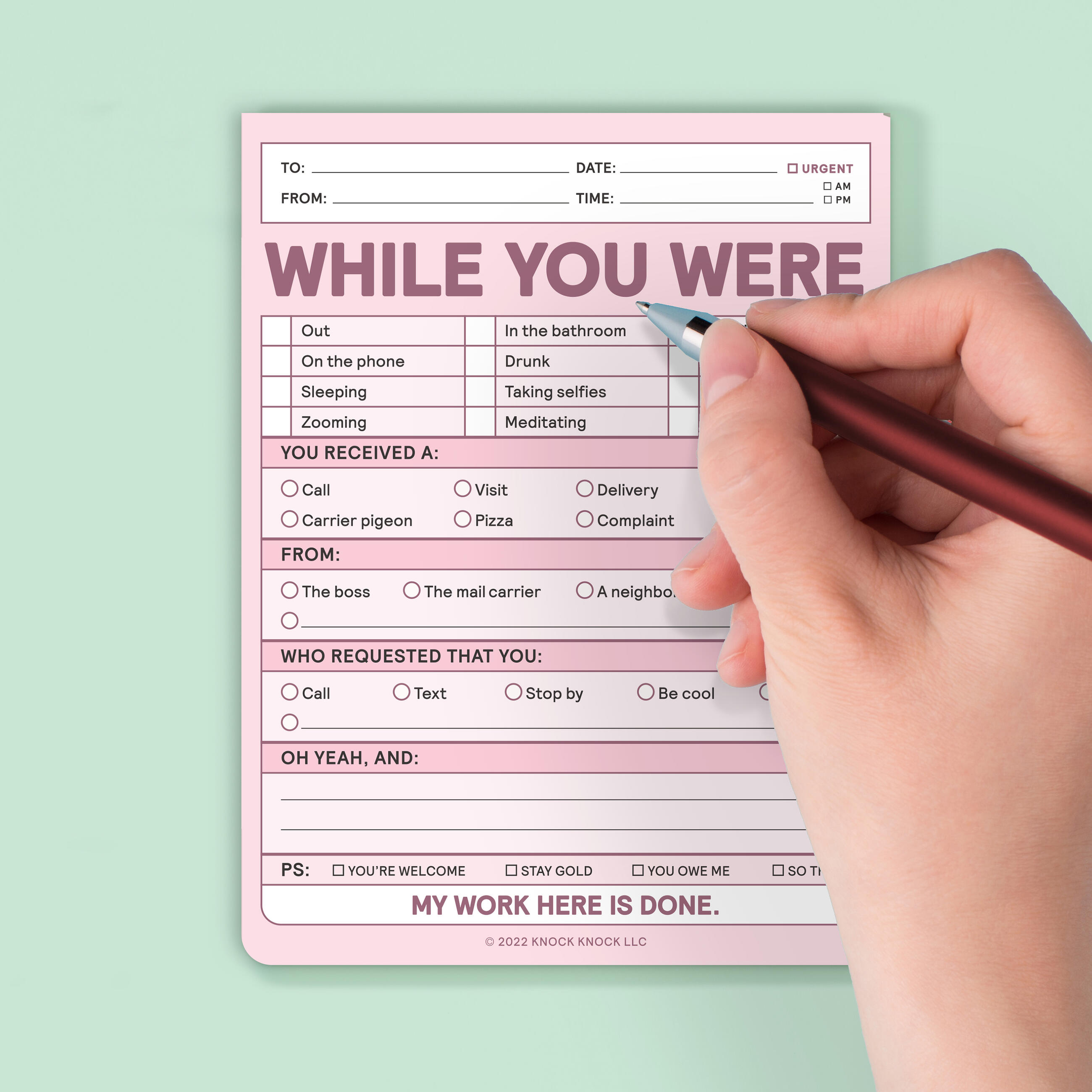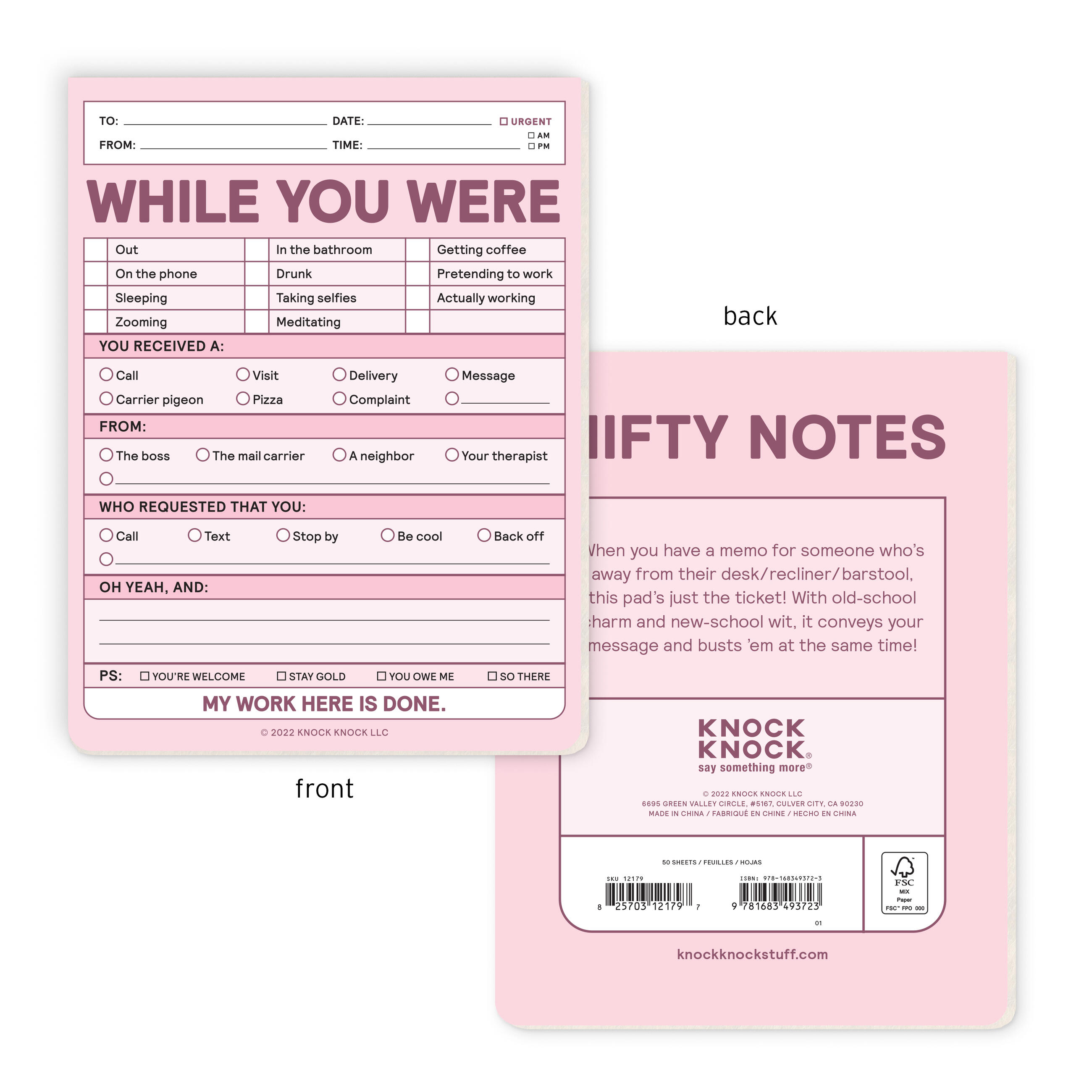 When you have a memo for someone who’s away from their desk/recliner/barstool, this while you were out message pad is just the ticket! With old school charm and new-school wit, it conveys your message and busts them at the same time!