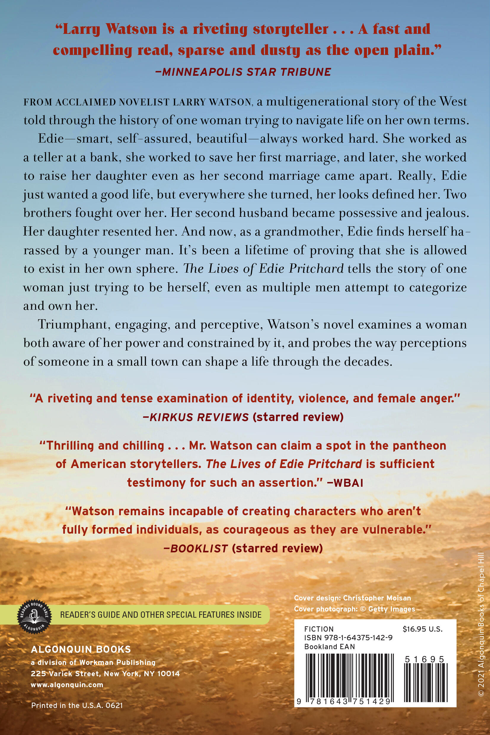 "Watson is insightful in his depiction of Edie and those who seek to control her, and his descriptions of small-town Montana life, where guns are frequently a menacing presence, reflect how the potential for violence is ever present beneath the surface of things. The novel crackles with tension, especially the second and third acts; Watson is a born storyteller, and it shows on every understated page. But Edie's story also rings with a hardscrabble poetry . . . A riveting and tense examination of identity, violence, and female anger."