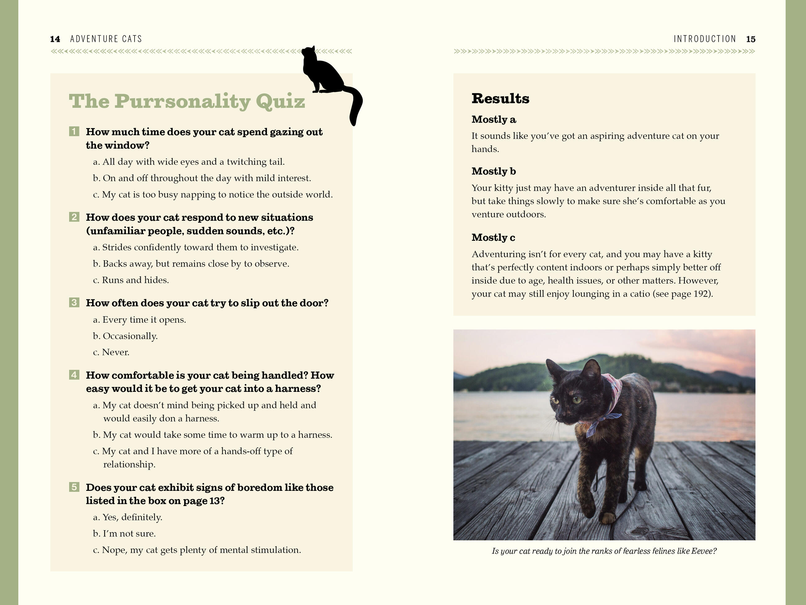 The stories themselves are catnip for animal lovers, from Nanakuli, the one-eyed cat who hangs ten; to Georgie, a four-year-old gray tabby who lives on a sailboat; to Quandary, who not only insists on hiking with her family but also teaches them a valuable lesson: When you follow your cat’s natural tendency to wander, you experience the outdoors at a slower, richer pace. This book will delight every cat person, regardless of whether their pet is inclined to adventure. (Take the quiz at the beginning of the book to find out!)