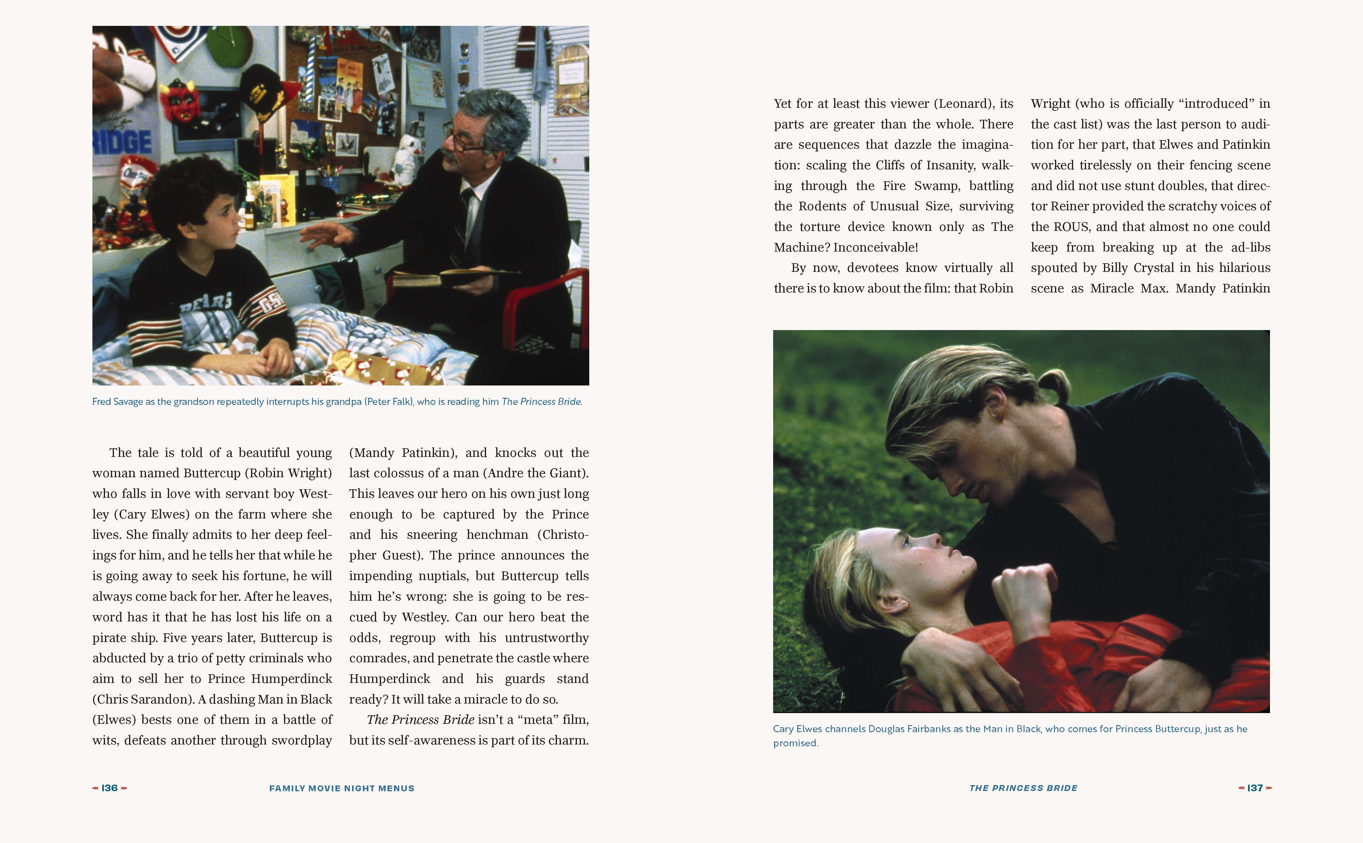 Each entry includes a film profile filled with behind-the-scenes stories about the production, stars, and filmmakers; moments to watch (or watch out) for; recommended further viewing; and a recipe inspired by the film to make together before the credits roll and enjoy while watching. The movies span one silent entry (The Kid), through classic horror (Bride of Frankenstein), to legendary stories (The Wizard of Oz), musicals (The Sound of Music), can’t miss adventures (Star Wars), and modern must-sees (Harry Potter and the Sorcerer’s Stone).