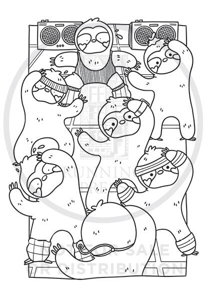 - 40 black line illustrations of sloths napping, cuddling, and even reading!