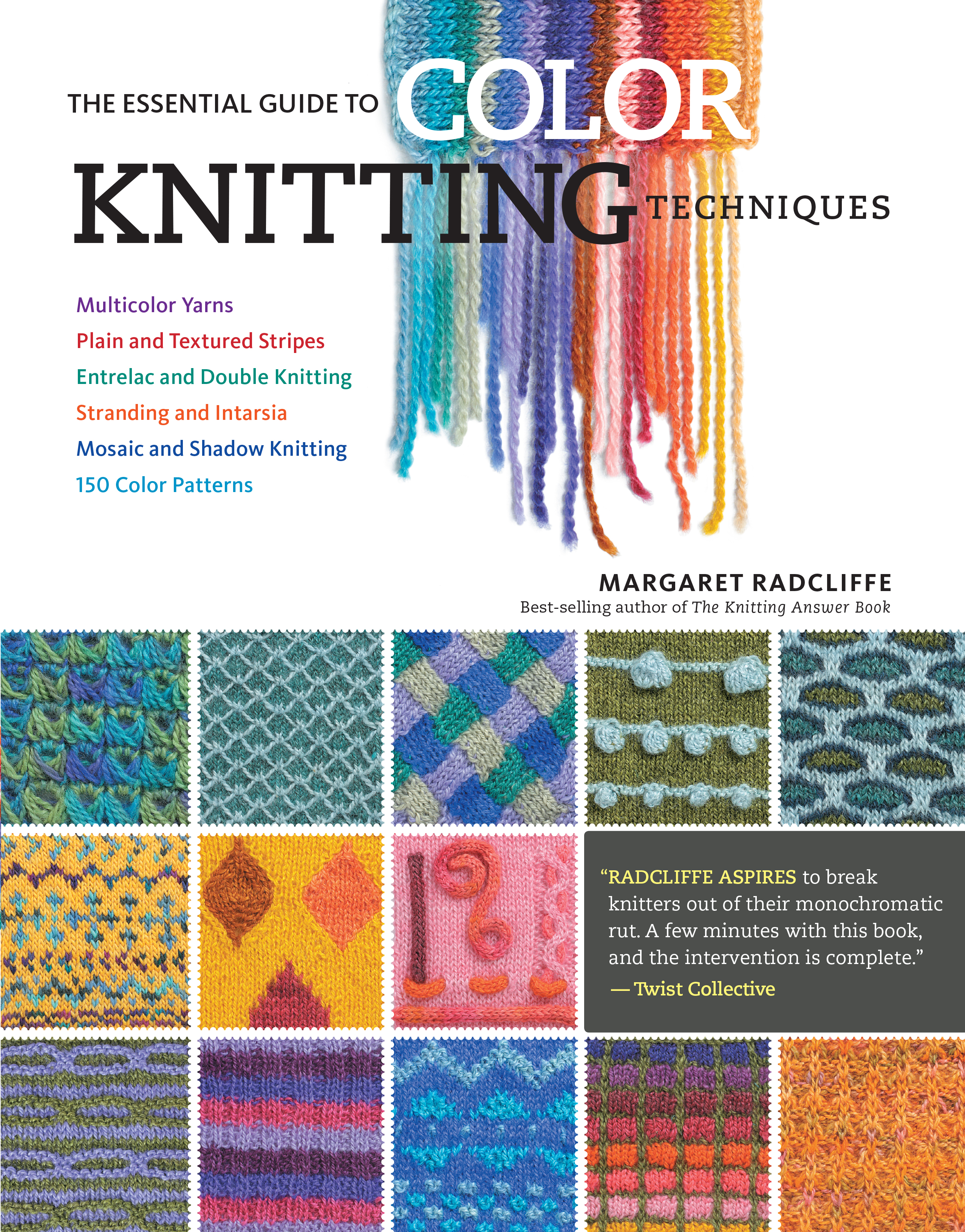 Now in paperback! Imagine a softly striped crib blanket knit in the comforting colors of the nursery. Or a sophisticated cashmere wrap featuring rich jewel tones that set off a favorite black dress. Knitting teacher and author Margaret Radcliffe presents a world of color techniques in a single comprehensive reference that you’ll consult every time two or more yarn colors are in play. Stitchers of every ability level will love the color-combining methods and professional secrets revealed in The Essential Guide to Color Knitting Techniques. Multicolor knitting techniques are explained with step-by-step illustrations and photographs accompanied by instructive text. Complete chapters on stripes, stitch effects, succeeding with multicolor yarns, stranded knitting, and intarsia cover the theory and how-to behind each method and offer creative solutions for handling tangled yarn, estimating yarn quantities of each color, holding on to all those ends, and employing stunning finishing techniques. A final chapter describes more unusual techniques, such as helix, shadow, mosaic, and modular knitting.