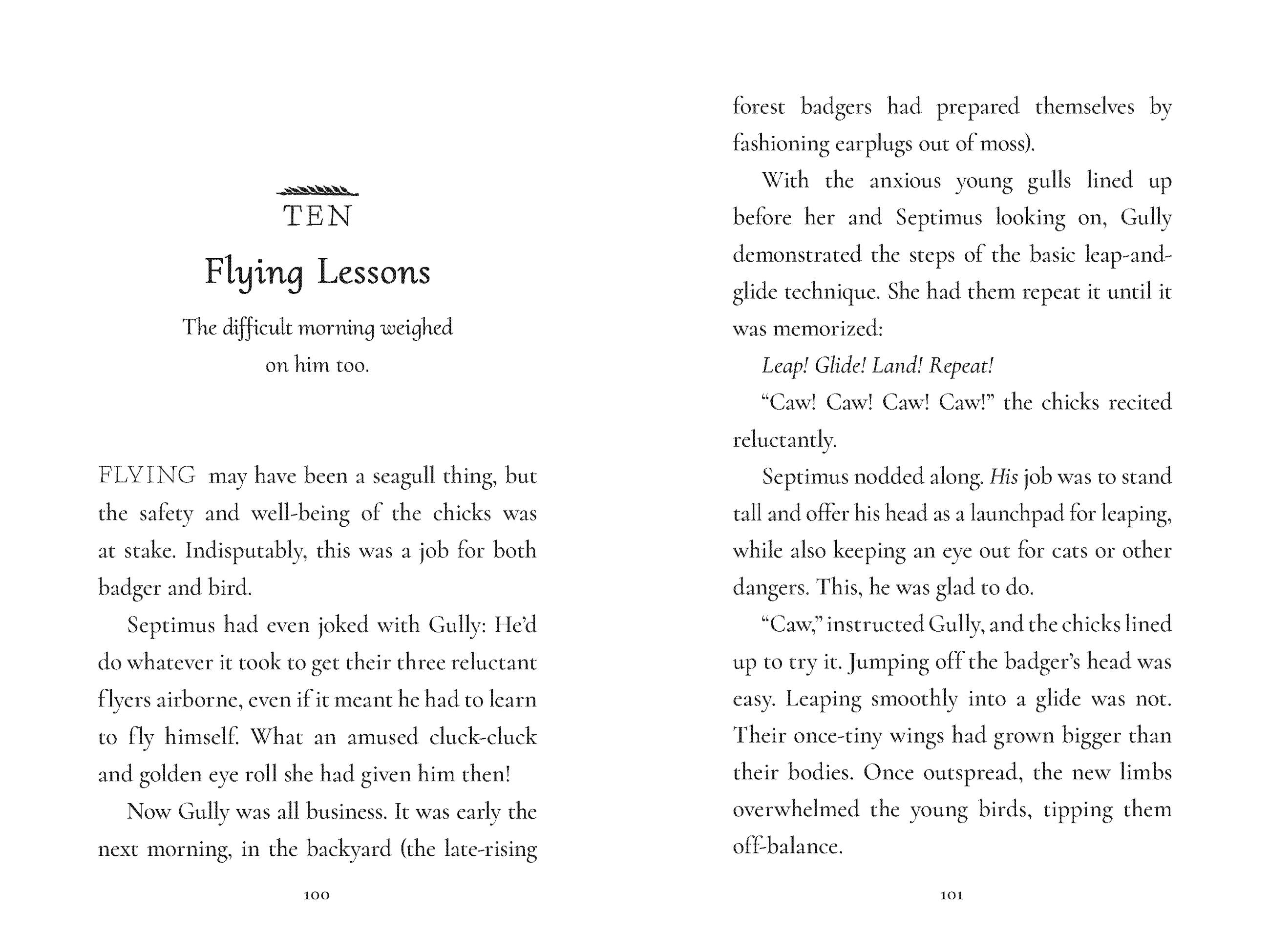 Just when it seems Septimus might get a bit of the bird-free, badger-only alone time he needs, a knock at the door brings a big surprise: eight visiting forest badgers! As the chicks take to burrowing underground and gobbling up worms with their new badger family, Gully worries they will never learn to take flight. Can Septimus find a way to give the chicks a proper liftoff? Or will their family fall apart instead?