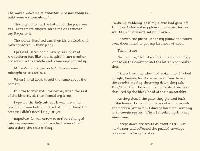Ruby and her best friend Deva have won free places at the Ash Tree Foundation Performing Arts Camp over the summer. There’s just one problem: they won’t be able to attend unless their grades seriously improve. When Deva suddenly starts getting high marks in all their subjects, a confused and hurt Ruby feels left behind. Then she finds out Deva’s success is due to EchoStar, a new app that’s helping her get ahead.