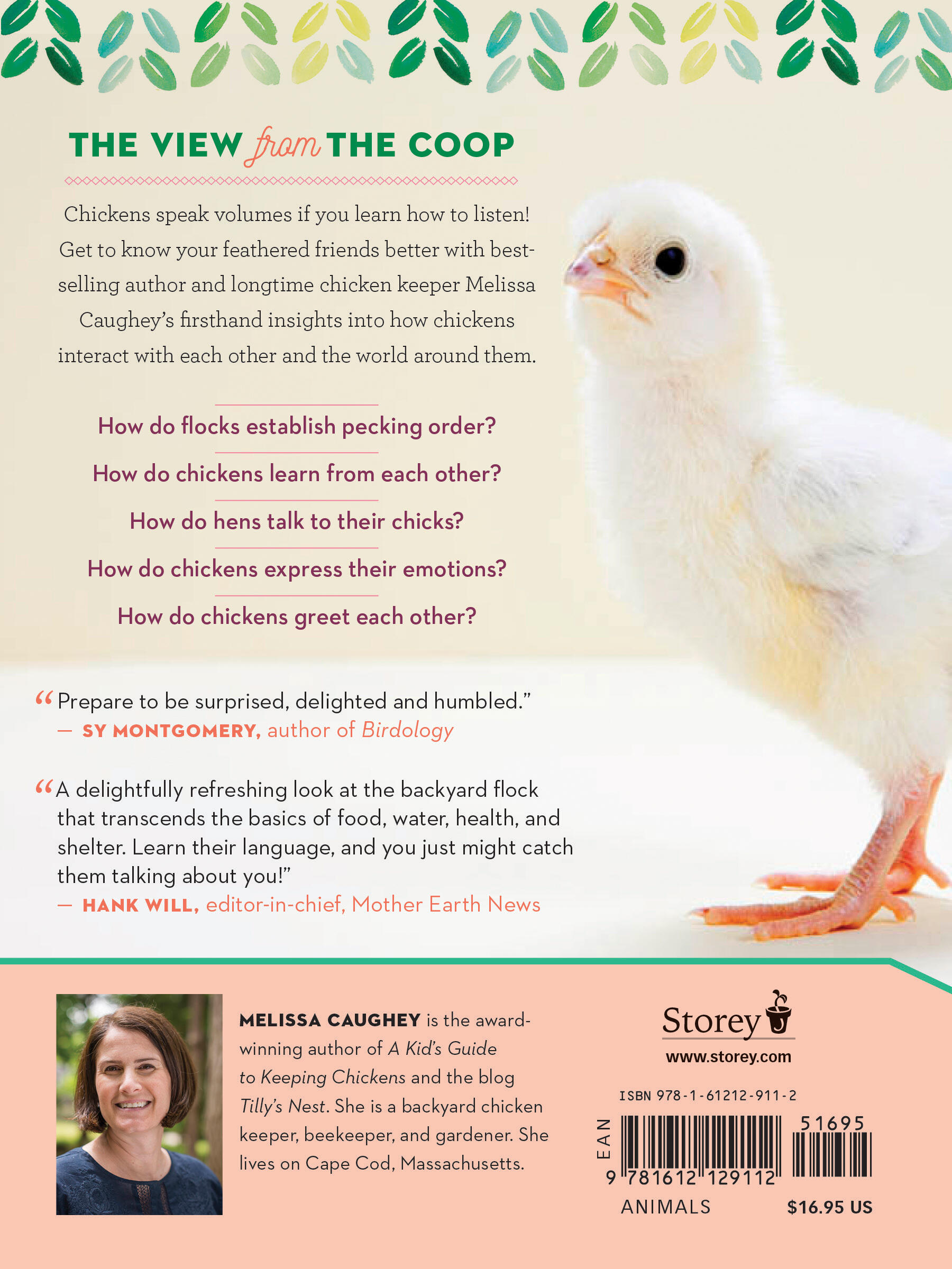 “Melissa's enthusiasm for chickens, like my own, knows no bounds. Chickens are both amusing and practical and, as you'll find out, they are also intelligent communicators ... if you are willing to learn their language! This book provides fascinating insight and practical tips for fowl fanciers everywhere.” — P. Allen Smith, television host, writer, and professional gardener