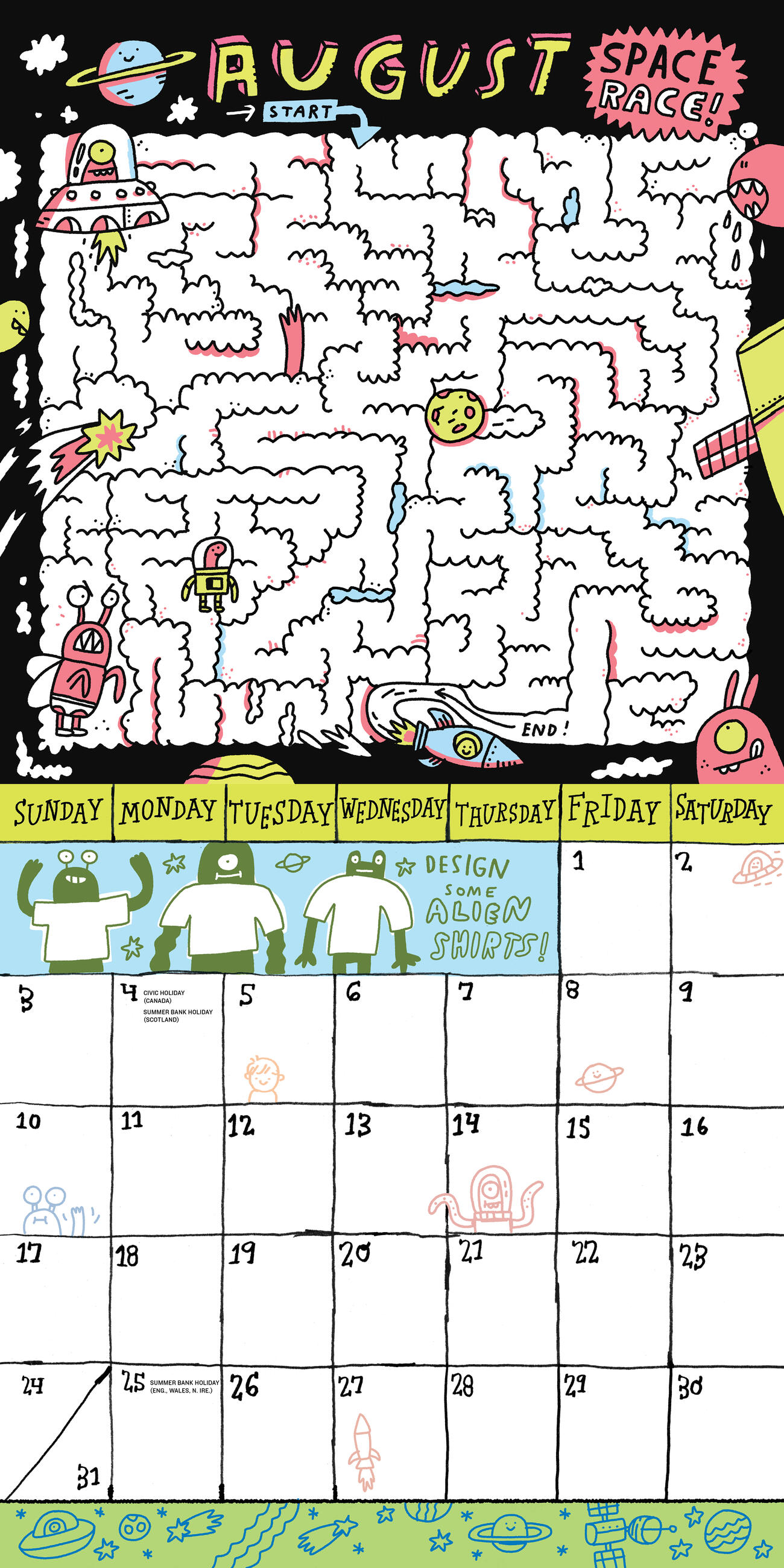 - GREAT GIFT: Encourage creativity and organization at the same time with this calendar featuring lively illustrations, fun activities, and inspiring prompts.