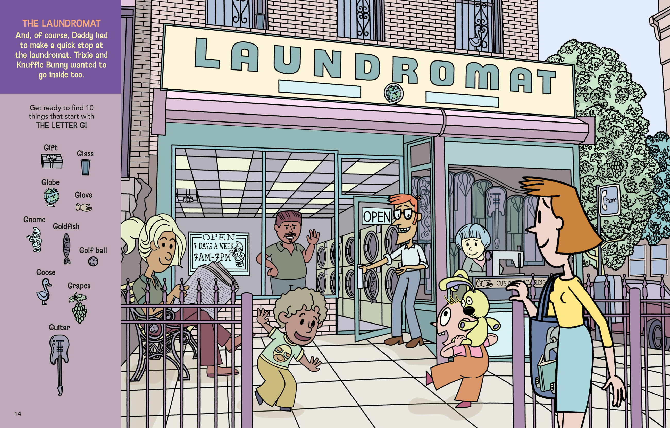 Mo Willems Workshop presents an alphabet search-and-find adventure starring Trixie, Knuffle Bunny and her family, from Mo Willems’ Caldecott Honor Knuffle Bunny picture book series.