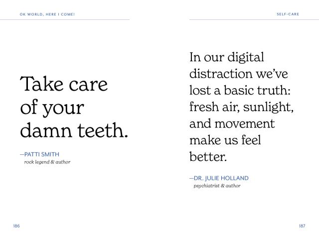 OK, World, Here I Come! is an invaluable book for graduates as they launch into the next chapter of life. Organized by themes such as Self-Care, Success & Failure, Work Ethic, and more, each quote is carefully selected to evoke confidence, motivation, and encouragement for the reader.