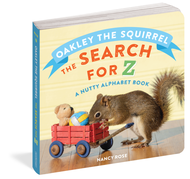 Oakley the Squirrel: The Search for Z is an alphabet book like no other. In it, we meet Little Oakley as he embarks on a quest to find the letter Z. He searches through an alphabet of human objects—looks beneath the Bed, claws through the Closet, digs through Drawers, examines his Easel, and so on. By the time he gets to a basket of yarn, Oakley starts to yawn, and soon falls asleep. And Z—as in, Zzzzzz!—appears!