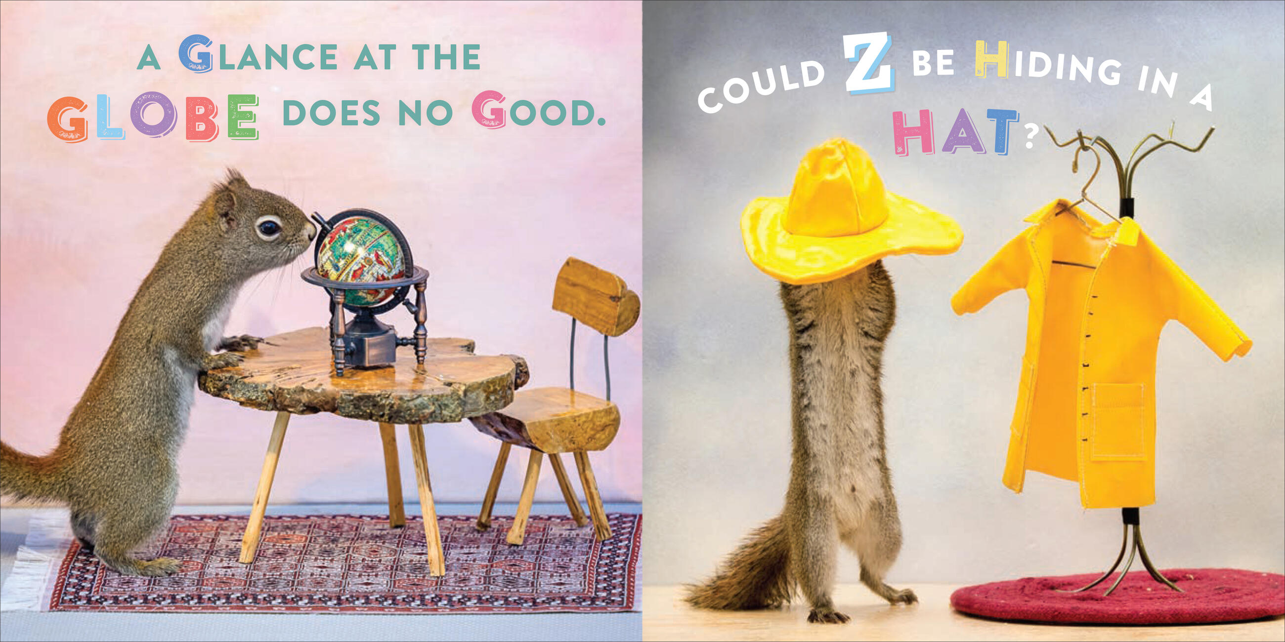 Every page features photos of real squirrels—no photoshopping! Photographer Nancy Rose lures squirrels into her photo frame using strategically placed peanuts, so they appear in squirrel-sized sets that replicate indoor human life, complete with beds, hats, dining tables and food, laundry machines, campers, and more. It’s irresistible!