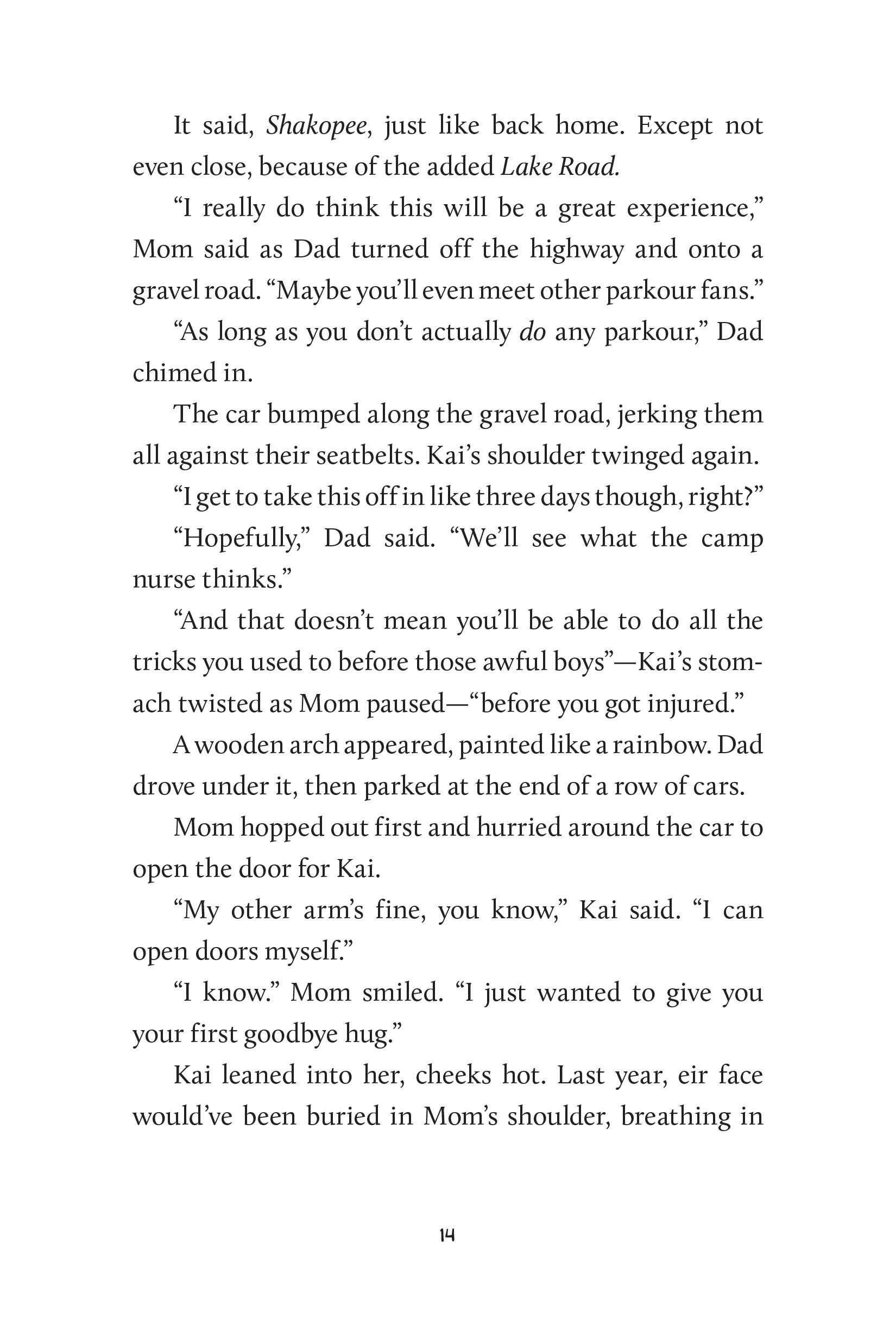 Thirteen-year-old Kai (e/em/eir) is not as excited. E just wants to hang out with eir best friend and eir parkour team. And e definitely does not want to think about the incident that left eir arm in a sling—the incident that also made Kai’s parents determined to send em somewhere e can feel like emself.