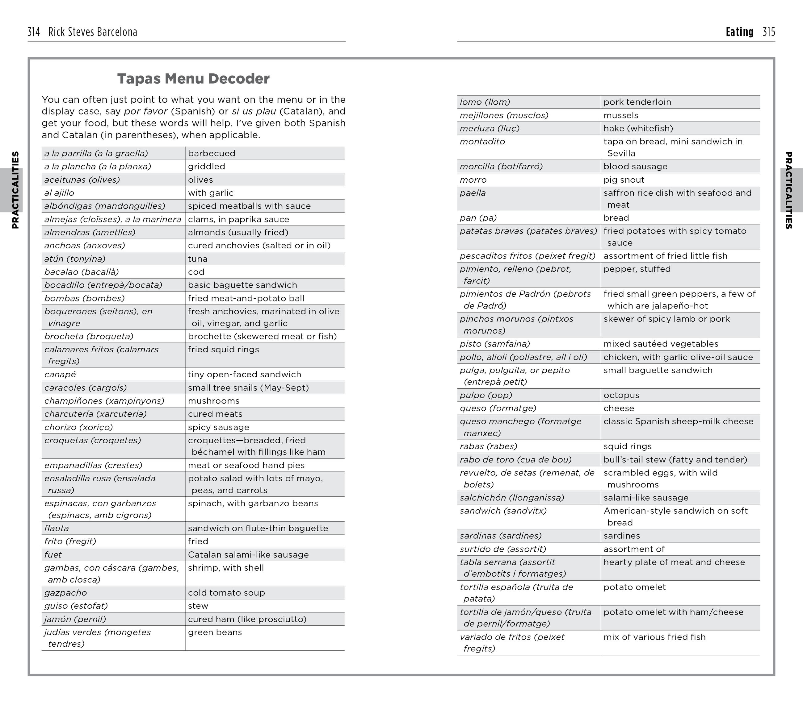 - Useful resources including a packing list, Spanish and Catalan phrase books, a historical overview, and recommended reading
